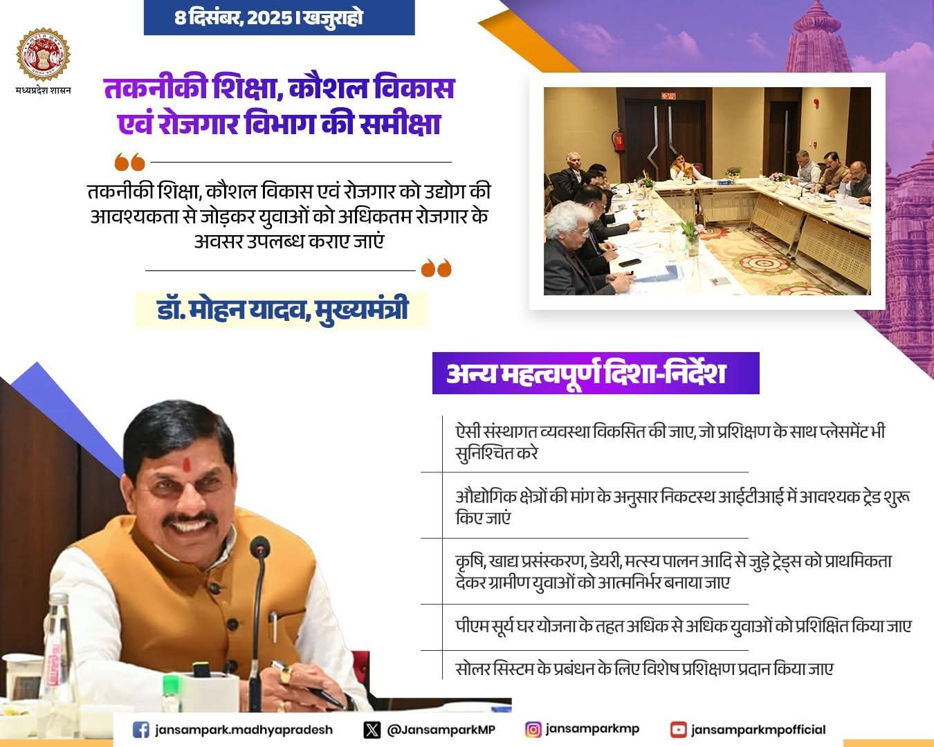 मुख्यमंत्री डॉ. मोहन यादव द्वारा खजुराहो में तकनीकी शिक्षा, कौशल विकास एवं रोजगार विभाग की समीक्षा