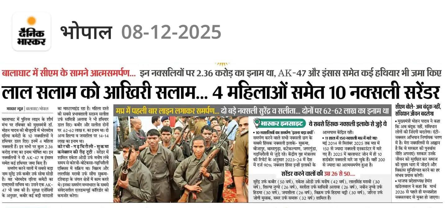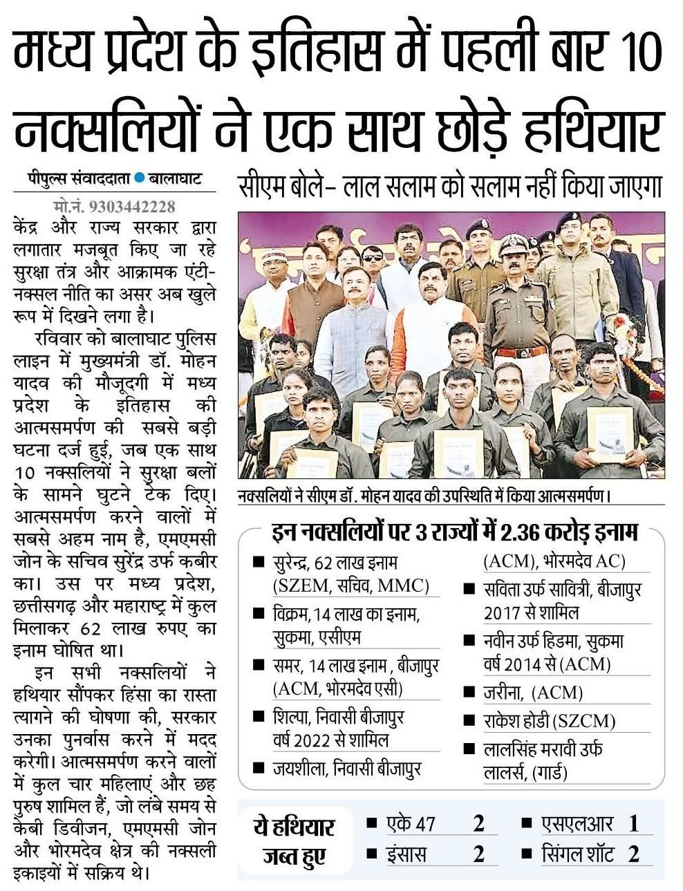 बालाघाट में सीएम डॉ.मोहन यादव के सामने आत्मसमर्पण 🔹4 महिलाओं सहित 10 नक्सलियों ने किया सरेंडर #JansamparkMP