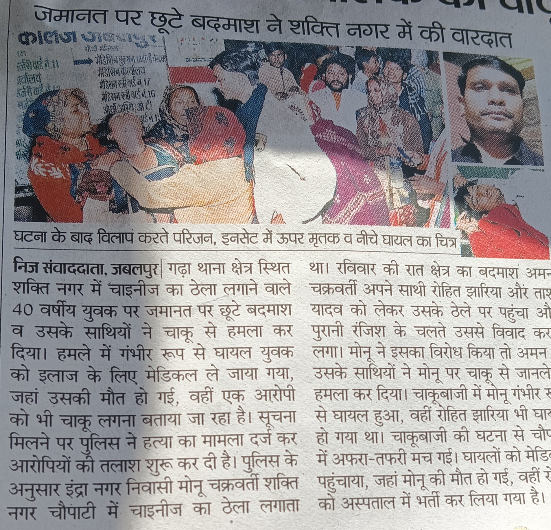 चाइनीज ठेला संचालक की चाकू घोंपकर हत्या