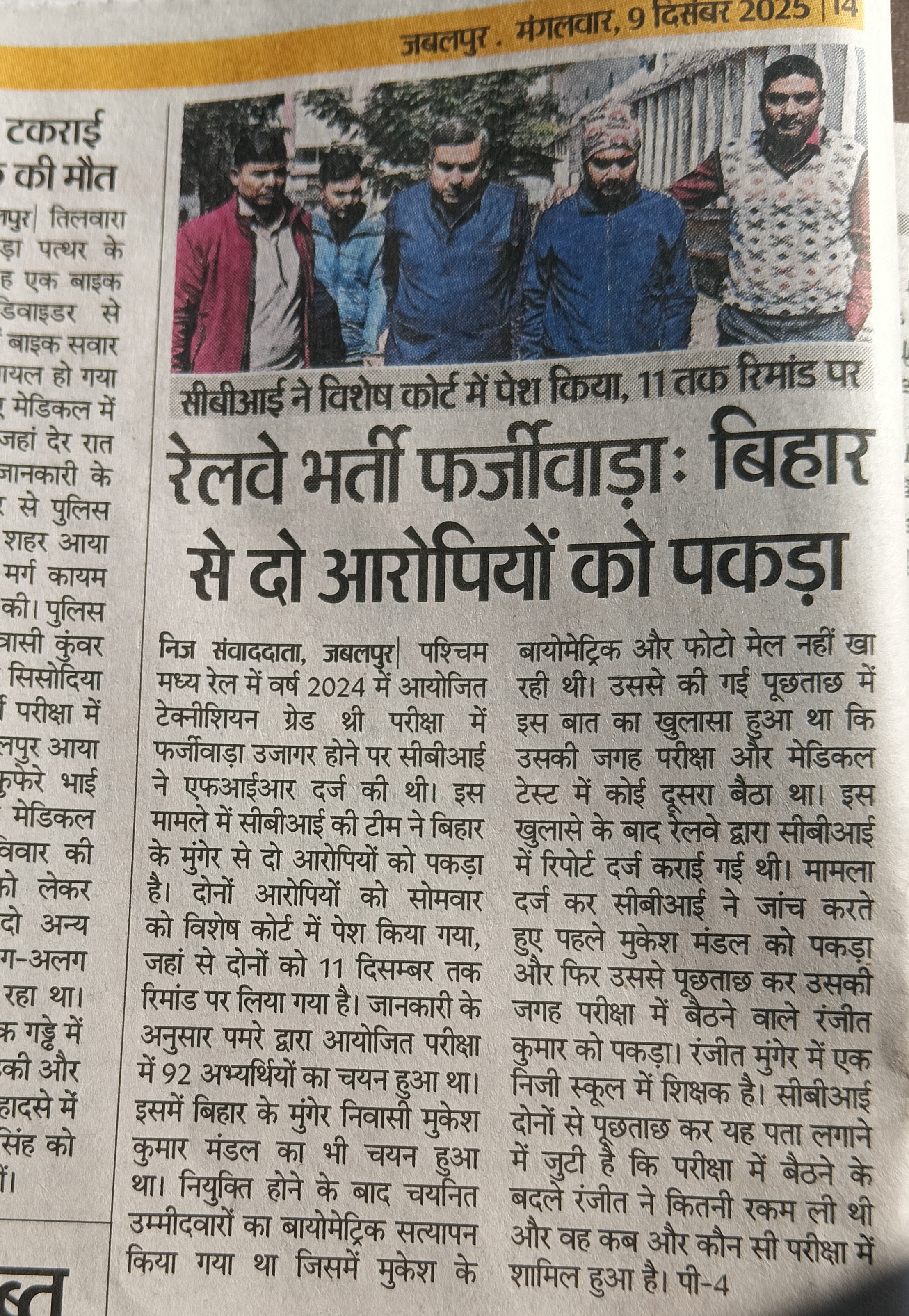 रेलवे भर्ती फर्जीवाड़ा बिहार के दो आरोपी को पकड़ा