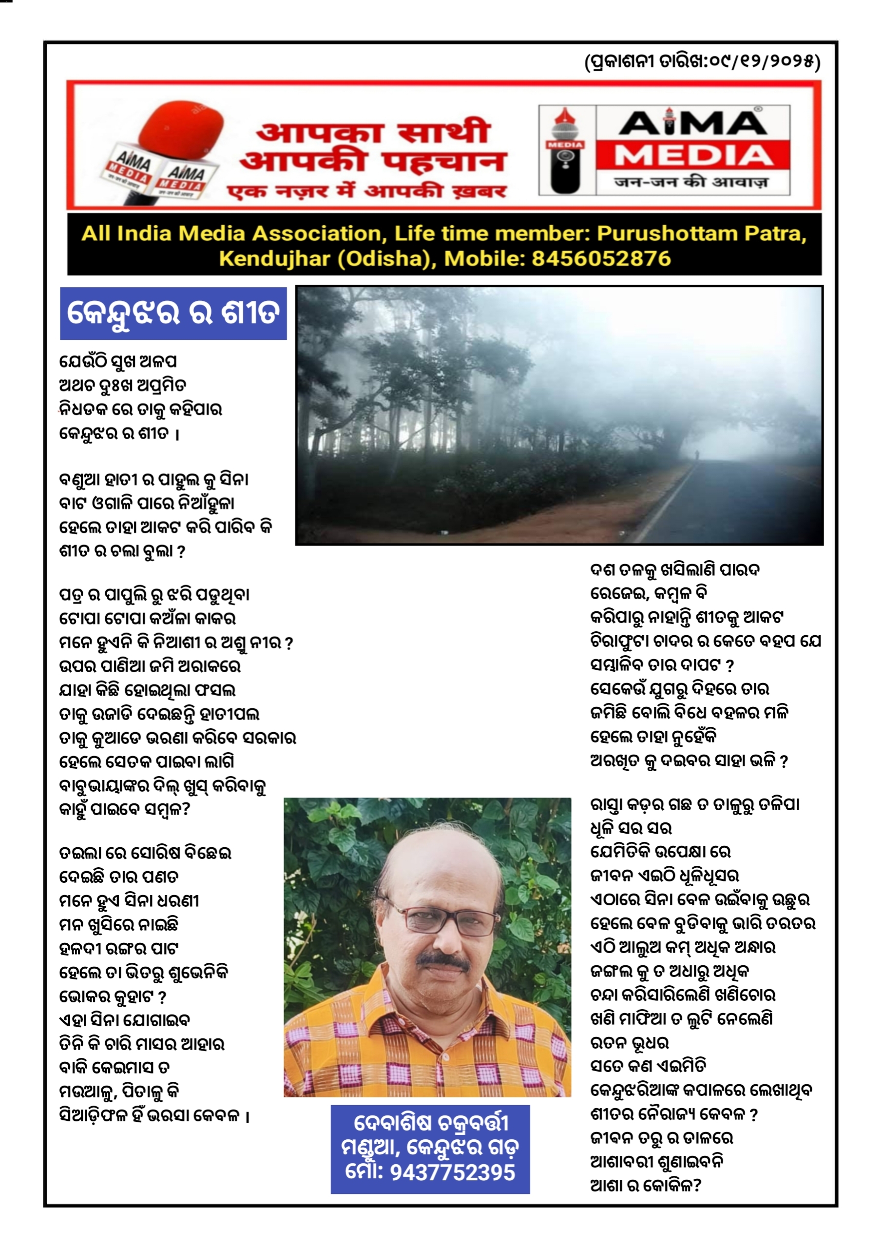 କେନ୍ଦୁଝର ର ଶୀତ - ଦେବାଶିଷ ଚକ୍ରବର୍ତ୍ତୀ ଙ୍କ ଦ୍ଵାରା ରଚିତ କବିତା।