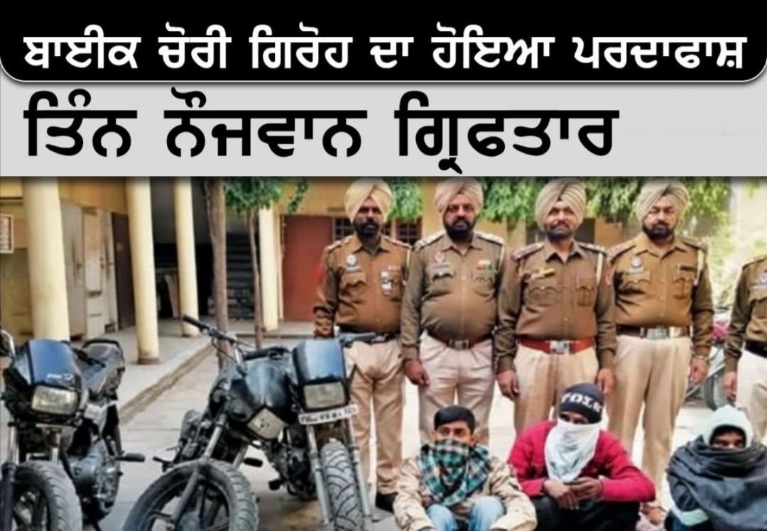 Police ਨੇ ਬਾਈਕ ਚੋਰੀ ਗਿਰੋਹ ਦਾ ਕੀਤਾ ਪਰਦਾਫਾਸ਼ ! ਤਿੰਨ ਨੌਜਵਾਨ ਗ੍ਰਿਫਤਾਰ