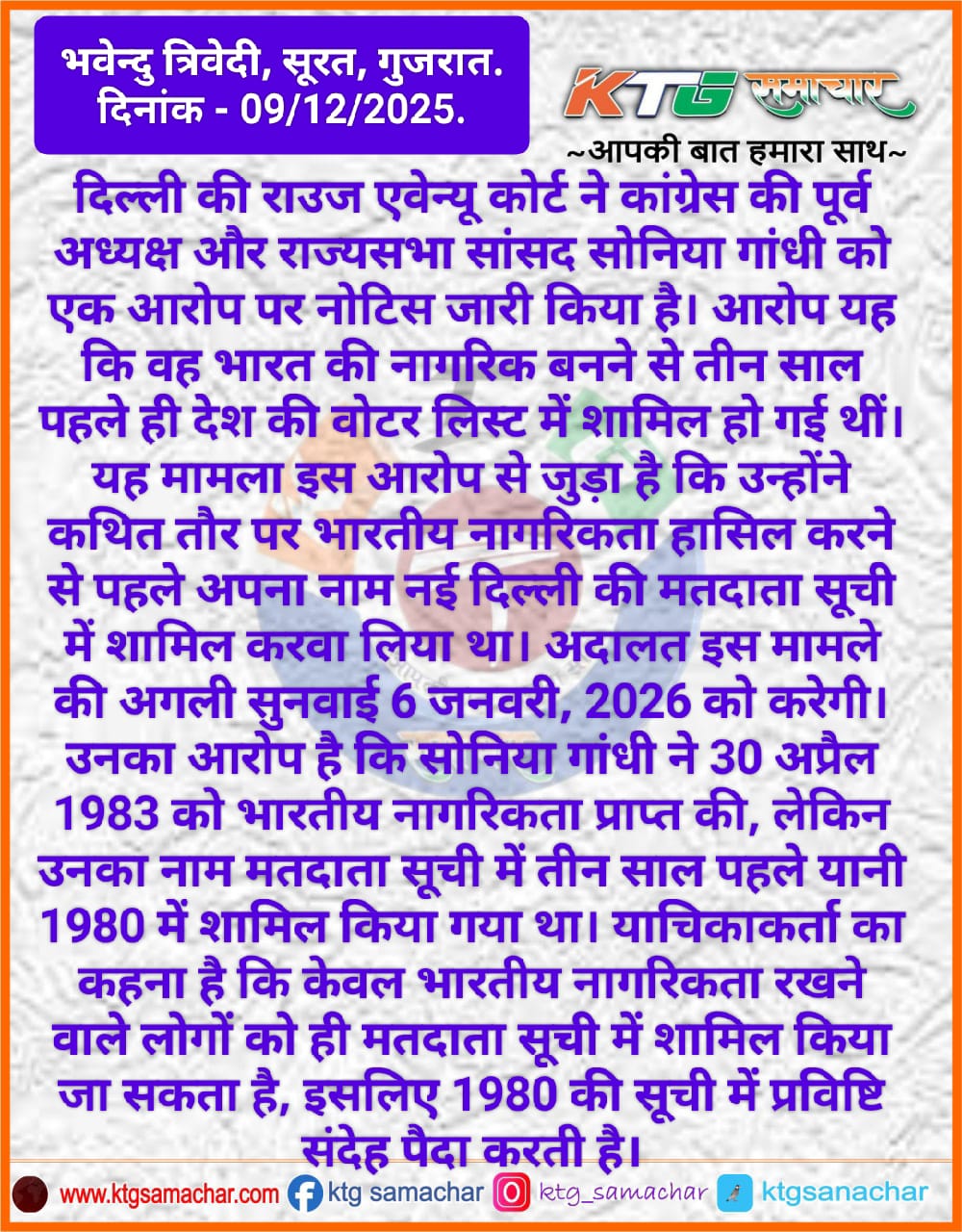 दिल्ली की राउज एवेन्यू कोर्ट ने सांसद सोनिया गांधी को नोटिस जारी किया।