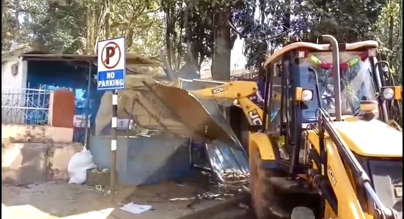 Around 1 pm, a team from Koraput Municipality arrived at the site with a JCB machine and demolished the illegally erected structures. The operation aimed to ensure smooth movement of vehicles and restore the original width of the national highway, which had been narrowed due to unauthorized stalls.