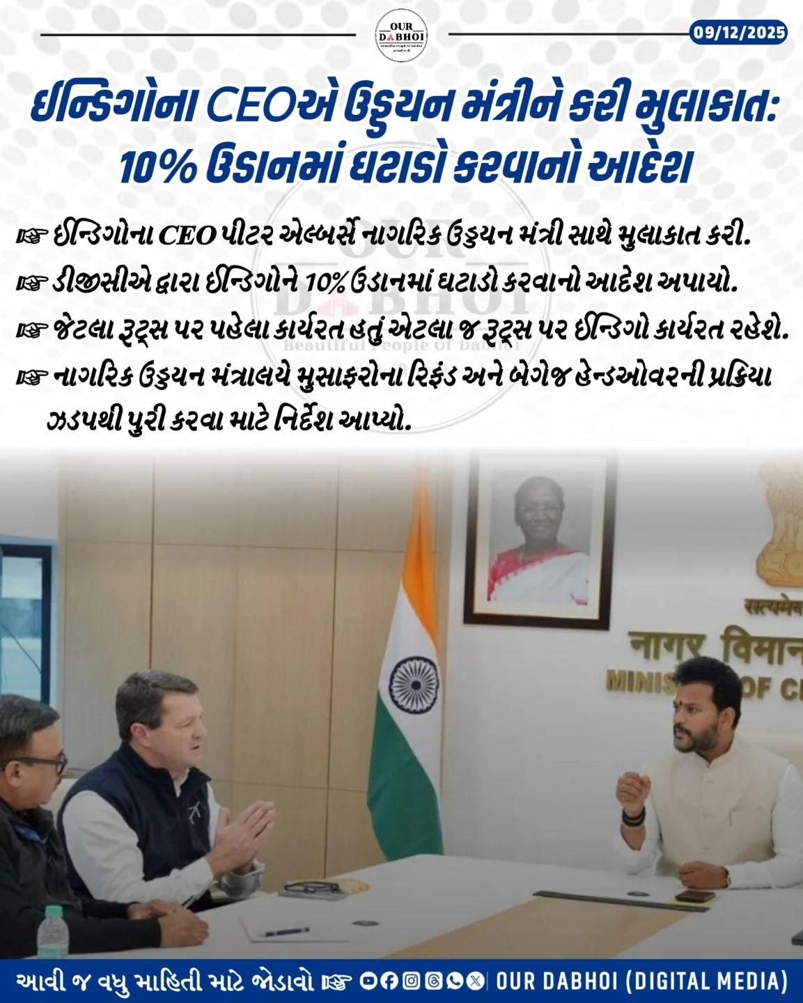 #IndiGo #IndiGoCrisis #PieterElbers #CivilAviationMinister #FlightCut #DGCAOrder #Refunds #BaggageHandover #AviationNews #India #Dabhoi #Our_Dabhoi #News #Update #Digitalmedia