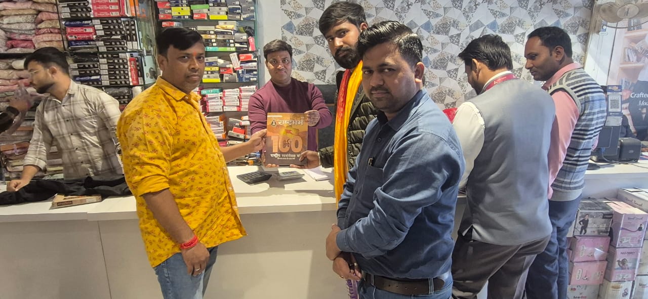 अभियान के दौरान जिला सोशल मीडिया प्रभारी वेद प्रकाश जायसवाल तथा भाजयुमो मंडल अध्यक्ष धीरज पाटिल ने व्यापारियों के प्रतिष्ठानों पर पहुंचकर ‘राष्ट्र धर्म’ पुस्तक का वितरण किया। उन्होंने बताया कि संघ ने पिछले सौ वर्षों में सामाजिक समरसता, राष्ट्रभावना और सेवा की परंपरा को मजबूत करने का निरंतर कार्य किया है।