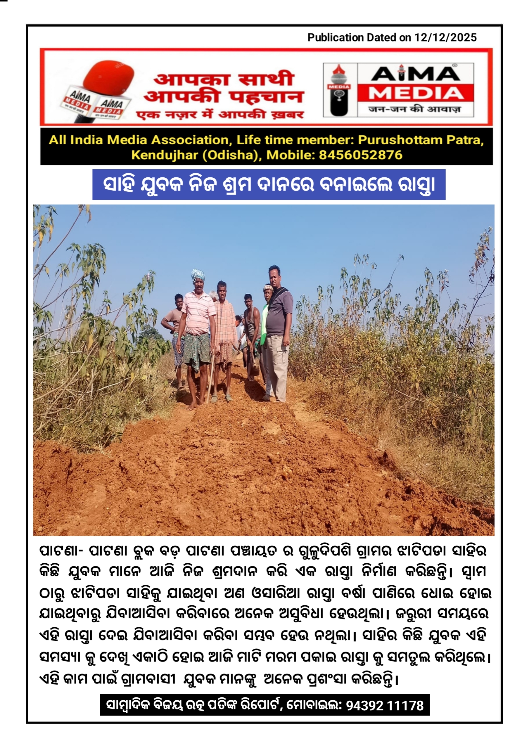 ସାମ୍ବାଦିକ ବିଜୟ ରତ୍ନ ପତିଙ୍କ ରିପୋର୍ଟ, ମୋବାଇଲ: 94392 11178