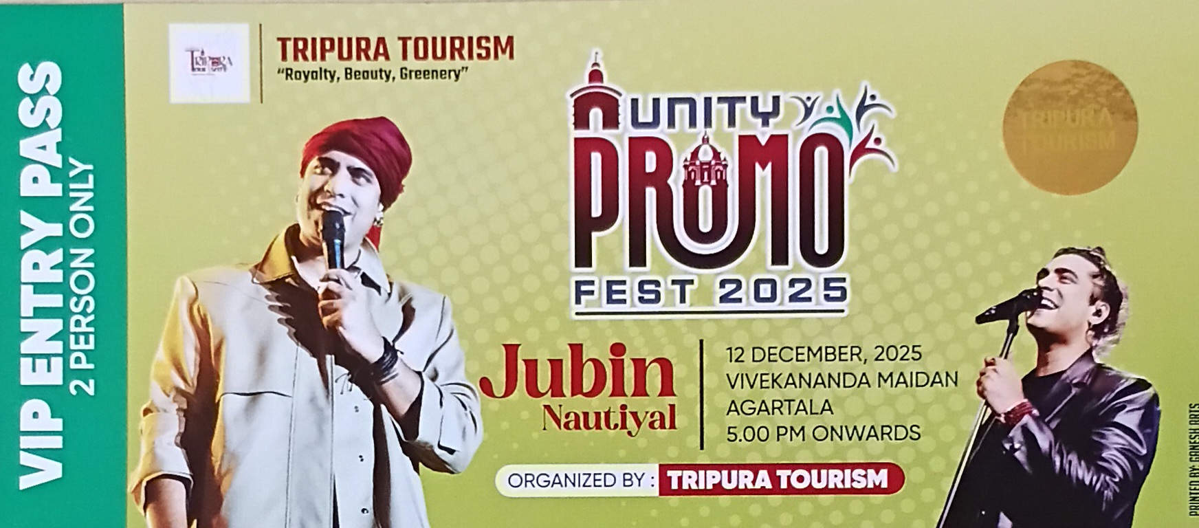 Today on 12th December In Tripura State At city Agarta Unity Promo Fest 2025 is going to be held By Zubin Notiyal and Sourav Ganguly