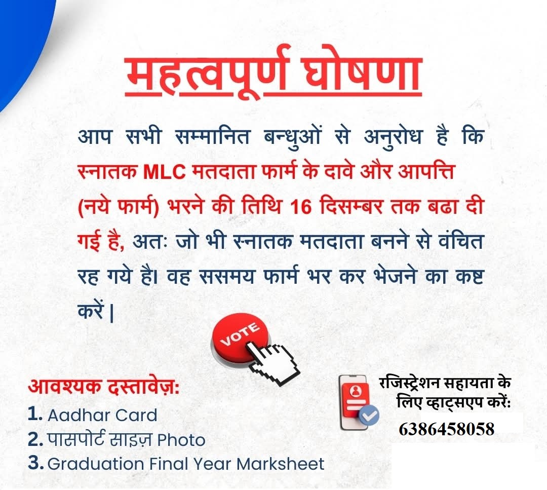 महत्वपूर्ण सूचना - स्नातक MLC मतदाता पंजीकरण 2026