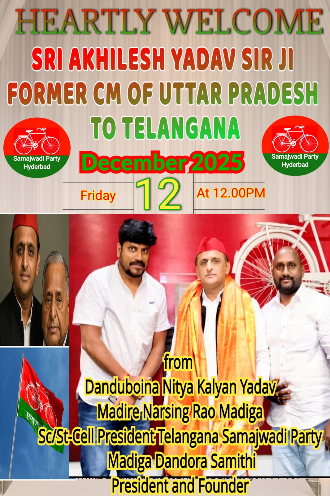 HEARTLY WELCOME SRI AKHILESH YADAV SIR JI FORMER CM OF UTTAR PRADESH TO TALANGANA