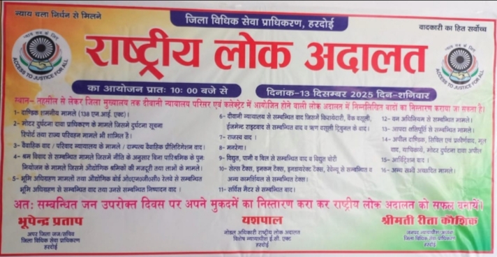 राष्ट्रीय लोक अदालत दिनाक 13 दिसम्बर 2025