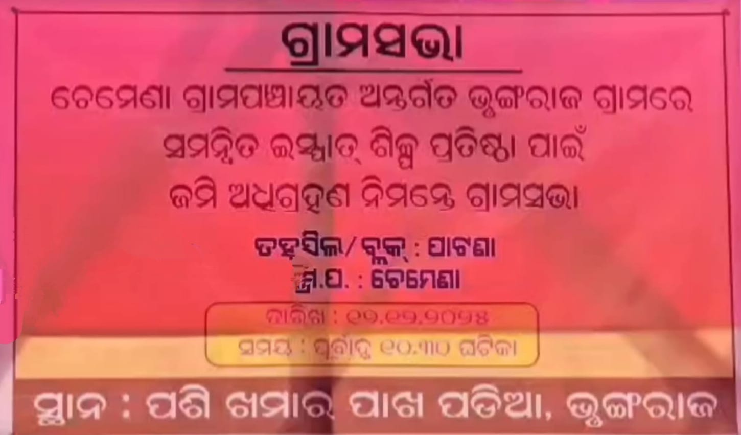 ସମନ୍ୱିତ ଇସ୍ପାତ ଶିଳ୍ପ ପ୍ରତିଷ୍ଠା ଲାଗି ପ୍ରଥମ ଗ୍ରାମସଭା ଶାନ୍ତି ଶୃଙ୍ଖଳା ସହ ସମ୍ପନ୍ନ।