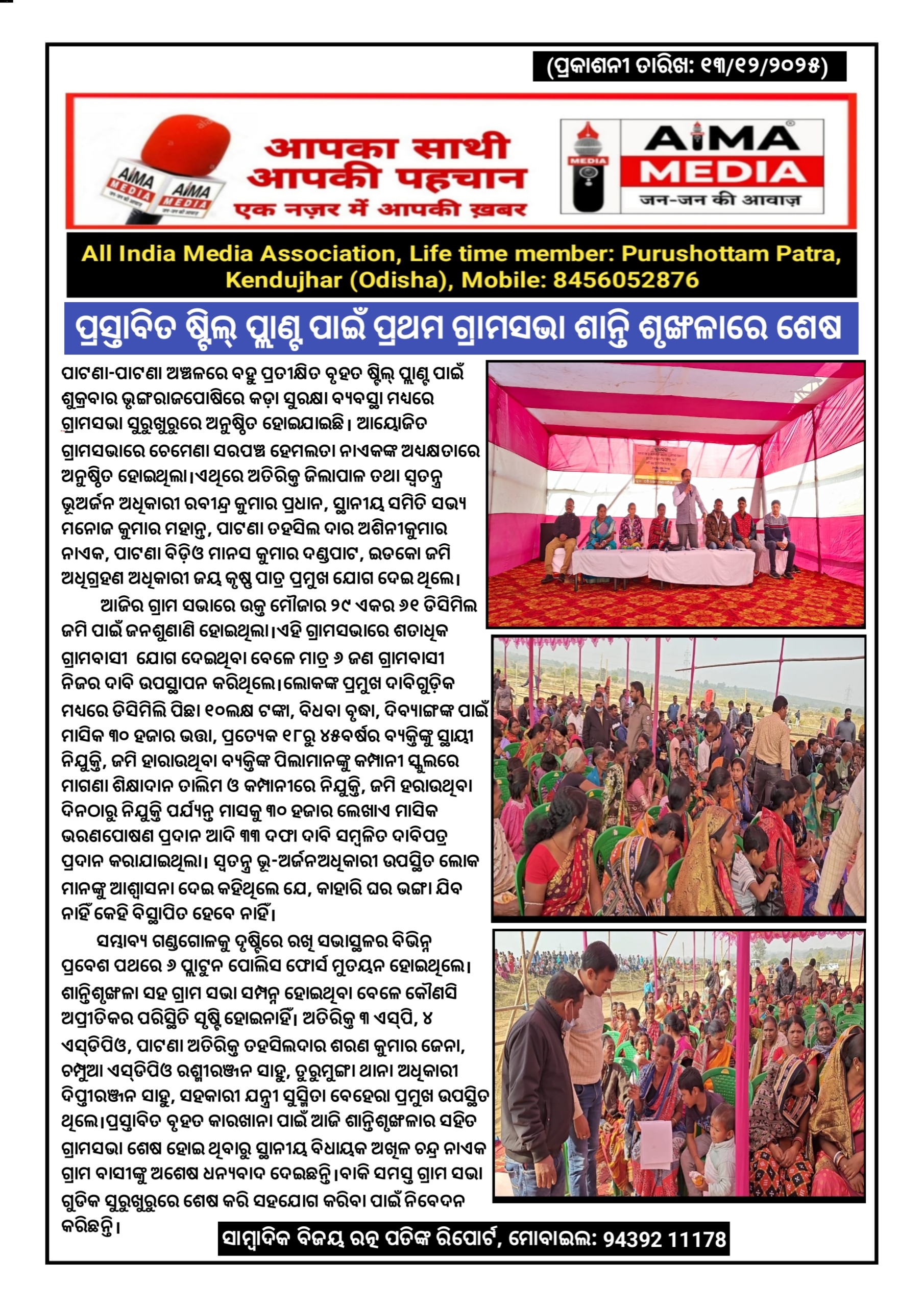 ପ୍ରସ୍ତାବିତ ଷ୍ଟିଲ୍ ପ୍ଲାଣ୍ଟ ପାଇଁ ପ୍ରଥମ ଗ୍ରାମସଭା ଶାନ୍ତି ଶୃଙ୍ଖଳା ରେ ଶେଷ।