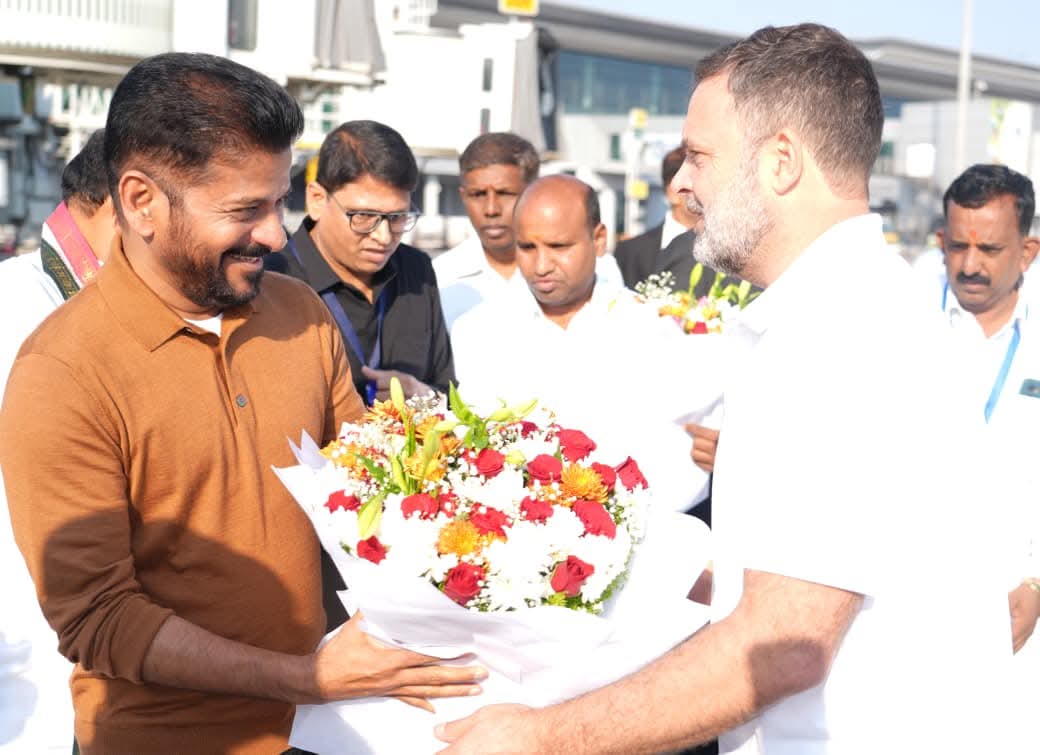 కాంగ్రెస్ జాతీయ నాయకుడు, ప్రతిపక్ష నేత రాహుల్ గాంధీకి స్వాగతం పలికిన తెలంగాణ ముఖ్యమంత్రి రేవంత్ రెడ్డి.🔥