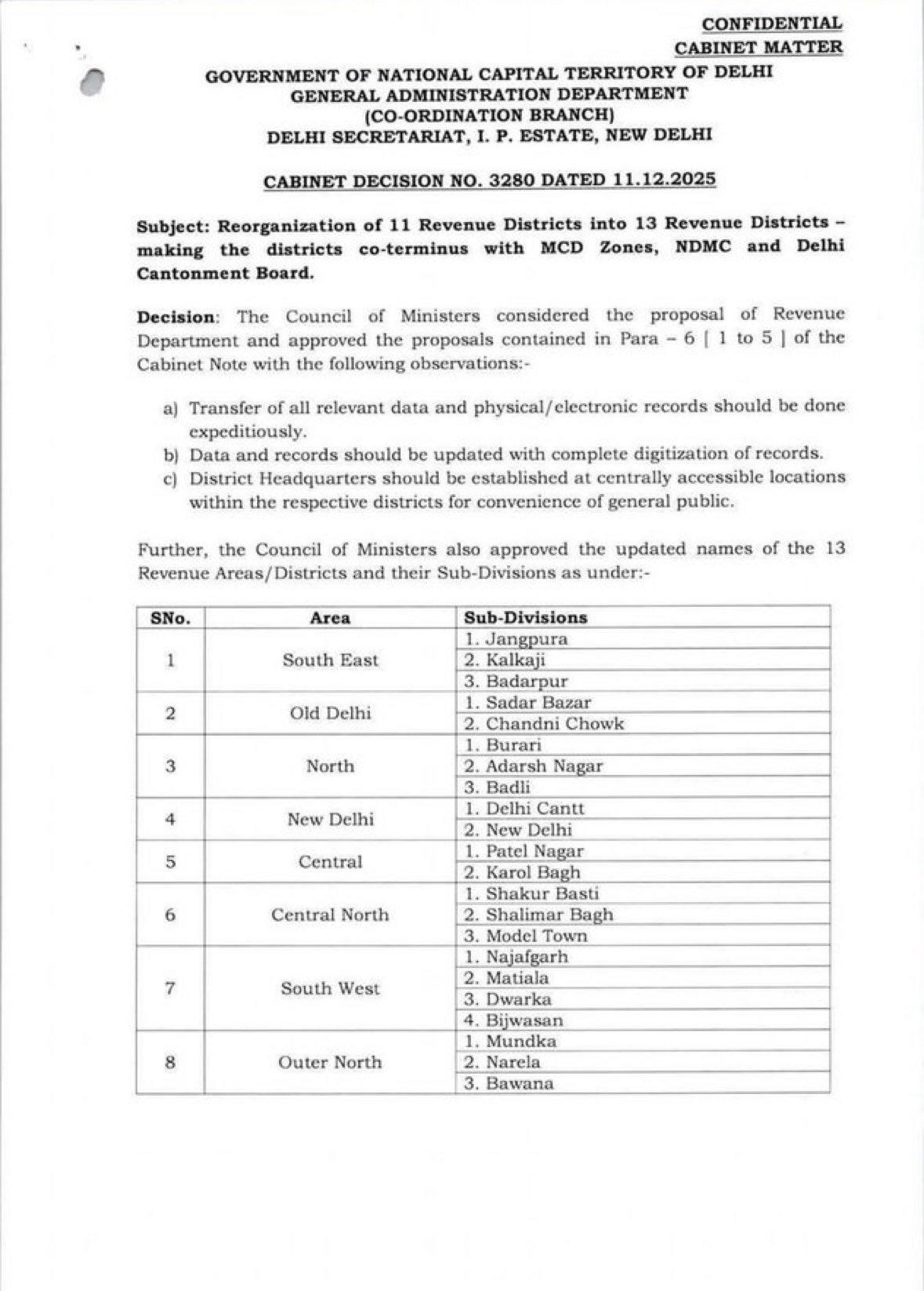 #ब्रेकिंग_अपडेट ।। दिल्ली में 11 ज़िलों के जगह 13 जिले अप्रूव कर दिए सरकार ने ।।