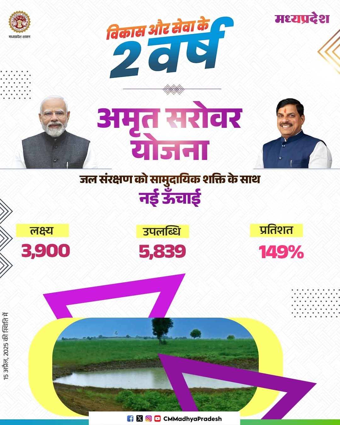 मुख्यमंत्री डॉ. मोहन यादव के नेतृत्व में ‘अमृत सरोवर योजना’ से जल संरक्षण को मिली नई दिशा...