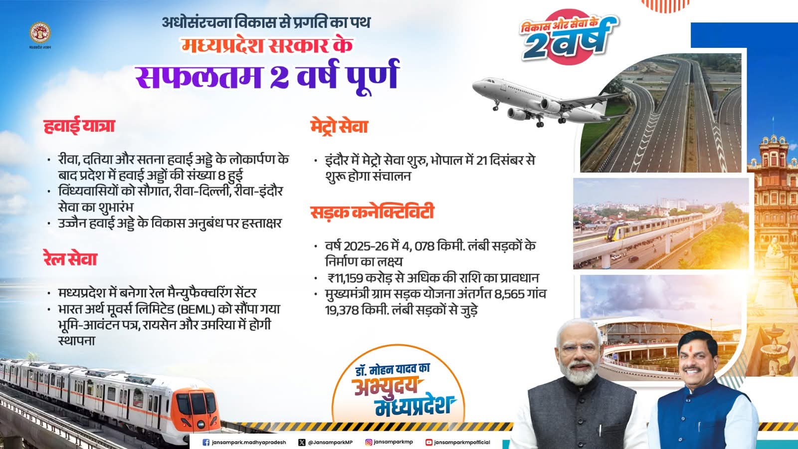अधोसंरचना विकास से प्रगति पथ मध्यप्रदेश सरकार के सफलतम दो वर्ष पूर्ण