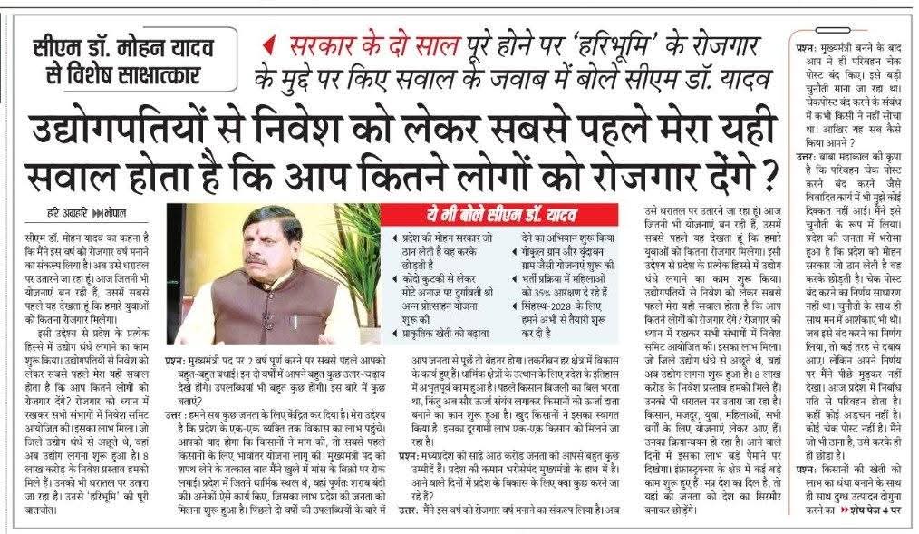 विकास और सेवा के दो वर्ष मुख्यमंत्री डॉ मोहन यादव का विशेष साक्षात्कार