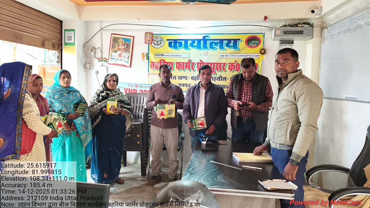 बहरिया । आकांक्षी विकासखंड बहरिया में उत्तर प्रदेश राज्य ग्रामीण आजीविका मिशन के अंतर्गत संचालित हो रहा कृषक उत्पादक संगठन बहरिया फार्मर प्रोड्यूसर कंपनी लिमिटेड के कार्यालय ब्लॉक बहरिया मैलहा फूलपुर, प्रयागराज में रविवार को शाक - भाजी सब्जी उत्पादक किसानों को उद्यान विभाग प्रयागराज द्वारा आयोजित एक दिवसीय प्रशिक्षण व बीज वितरण कार्यक्रम में उद्यान विभाग से आए हुए कर्मचारी / अधिकारी अजय कुमार यादव के द्वारा उन सभी कृषकों को उद्यान विभाग के चल रही समस्त योजनाओं मौन पालन, पाली हाउस, मुरब्बा- अचार बनाना, केला की खेती , स्प्रिंकलर जैसी अन्य सभी प्रकार के सब्जियों के अगेती तरीके से खेती करने और सभी उपस्थित कृषक को एफपीओ में जोड़ने के लिए उन सभी महिला कृषकों को कहा गया जिससे उद्यान विभाग के अधिकारी द्वारा ग्राम पंचायत मंसूरपुर में किसानों के खेतो का निरीक्षण भी किया गया। तकनीक खेती करने से उन सभी महिला कृषकों को अत्यधिक लाभ प्राप्त हो सके जोकि इस कार्यक्रम में बहरिया फार्मर प्रोड्यूसर कंपनी लिमिटेड के मुख्य कार्यकारी अधिकारी शंकर लाल यादव द्वारा सभी महिला कृषकों को एक दिवसीय प्रशिक्षण प्रदान कराते हुए उन सभी कृषकों को यह एफपीओ की प्रगति के लिए सभी लोग अत्यधिक शेयर होल्डर जोड़े और सभी लोग ज्यादातर ऑर्गेनिक खेती करने का सलाह दिया गया जिससे उन सभी के उत्पादन फसलों में अत्यधिक आय वृद्धि व किसानों को रोजगार आसानी से प्राप्त हो सके जिससे सभी कृषक दिए गए प्रशिक्षण से ऑर्गेनिक खेती करने का निर्णय लिए । जिसमे एस एम सहगल फाउंडेशन के एल आर पी भारत लाल पटेल द्वारा इस कार्यक्रम में किसानों के हित के बारे में कुछ जानकारी प्राप्त कराया। इस वितरण कार्यक्रम में उपस्थित कृषक क्रान्ति, सुषमा, सविता पटेल, आसिमा पटेल, संजीव कुमार, कृष्ण बहादुर पटेल अन्य कई कृषक प्रतिभाग किए और टमाटर, बैंगन, मिर्च, अन्य कई प्रकार के सब्जियों के बीज प्राप्त करके प्रशंसा खुशी प्रकट किए। प्रशिक्षण प्राप्त करने के बाद उन सभी महिला कृषकों के चेहरों पर खुशी स्पष्ट झलक रही थी।