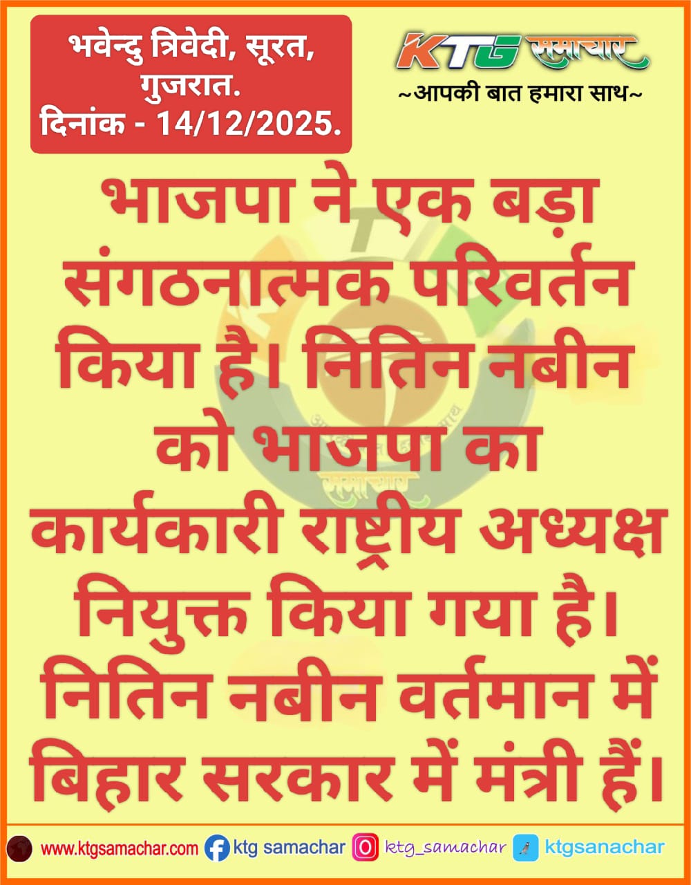 नितिन नबीन को भाजपा का कार्यकारी राष्ट्रीय अध्यक्ष नियुक्त किया गया है।