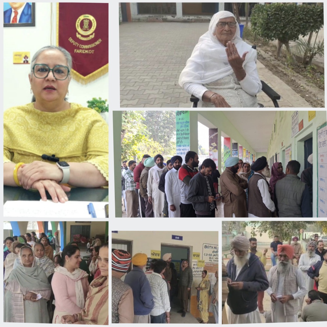 ਫ਼ਰੀਦਕੋਟ :14, ਦਸੰਬਰ (ਕੰਵਲ ਸਰਾਂ/ ਗੌਤਮ ਬਾਂਸਲ) ਜ਼ਿਲ੍ਹਾ ਚੋਣ ਅਫਸਰ ਕਮ ਡਿਪਟੀ ਕਮਿਸ਼ਨਰ ਮੈਡਮ ਪੂਨਮਦੀਪ ਕੌਰ ਅਤੇ ਐਸ.ਐਸ.ਪੀ ਡਾ.ਪ੍ਰਗਿਆ ਜੈਨ ਨੇ ਜ਼ਿਲ੍ਹਾ ਪਰਿਸ਼ਦ ਅਤੇ ਪੰਚਾਇਤ ਸੰਮਤੀ ਦੀਆਂ ਚੋਣਾਂ ਦੇ ਸਮੁੱਚੇ ਚੋਣ ਅਮਲ ਨੂੰ ਸ਼ਾਂਤੀਪੂਰਵਕ ਢੰਗ ਨਾਲ ਨੇਪਰੇ ਚਾੜਨ ਤੇ ਸਮੂਹ ਵੋਟਰਾਂ, ਸੁਰੱਖਿਆ ਕਰਮਚਾਰੀਆਂ ਅਤੇ ਚੋਣ ਅਮਲ ਵਿੱਚ ਲੱਗੇ ਅਧਿਕਾਰੀਆਂ, ਕਰਮਚਾਰੀਆਂ ਦਾ ਚੋਣ ਅਮਲ ਦੇ ਸ਼ਾਂਤੀਪੂਰਵਕ ਨੇਪਰੇ ਚਾੜ੍ਹਨ ਤੇ ਧੰਨਵਾਦ ਕੀਤਾ।ਜ਼ਿਲ੍ਹਾ ਚੋਣ ਅਫ਼ਸਰ ਕਮ ਡਿਪਟੀ ਕਮਿਸ਼ਨਰ ਮੈਡਮ ਪੂਨਮਦੀਪ ਕੌਰ ਨੇ ਦੱਸਿਆ ਕਿ ਵੋਟ ਪਾਉਣ ਦਾ ਕੰਮ ਸਵੇਰੇ 08.00 ਵਜੇ ਸ਼ੁਰੂ ਹੋ ਗਿਆ ਸੀ। ਉਨ੍ਹਾਂ ਦੱਸਿਆ ਕਿ ਸਵੇਰੇ 9 ਵਜੇ ਤੱਕ 9 % ਪੋਲਿੰਗ ਹੋਈ, ਦੁਪਹਿਰ 12 ਵਜੇ ਤੱਕ ਫ਼ਰੀਦਕੋਟ ਜ਼ਿਲ੍ਹੇ ਵਿੱਚ ਕਰੀਬ 21 ਪ੍ਰਤੀਸ਼ਤ ਪੋਲਿੰਗ ਹੋਈ। ਇਸੇ ਤਰ੍ਹਾਂ ਦੁਪਹਿਰ 2 ਵਜੇ ਤੱਕ ਕਰੀਬ 35 ਪ੍ਰਤੀਸ਼ਤ ਪੋਲਿੰਗ ਹੋਈ। ਇਸੇ ਤਰਾਂ ਸ਼ਾਮ 4 ਵਜੇ ਤੱਕ 48 ਪ੍ਰਤੀਸ਼ਤ ਦੇ ਕਰੀਬ ਵੋਟਾਂ ਪਈਆਂ ਉਨ੍ਹਾਂ ਦੱਸਿਆ ਕਿ ਲਾਈਨਾਂ ਵਿੱਚ ਲੱਗੇ ਵੋਟਰ ਅਜੇ ਵੀ ਆਪਣੀ ਵਾਰੀ ਦੀ ਉਡੀਕ ਕਰ ਰਹੇ ਸਨ। ਜ਼ਿਲ੍ਹਾ ਚੋਣ ਅਫ਼ਸਰ-ਕਮ-ਡਿਪਟੀ ਕਮਿਸ਼ਨਰ ਮੈਡਮ ਪੂਨਮਦੀਪ ਕੌਰ ਨੇ ਦੱਸਿਆ ਕਿ ਜ਼ਿਲ੍ਹੇ ਵਿੱਚ ਜ਼ਿਲ੍ਹਾ ਪਰਿਸ਼ਦ ਲਈ ਕੁੱਲ 10 ਜੋਨ ਸਨ, ਜਦਕਿ ਪੰਚਾਇਤ ਸੰਮਤੀਆਂ ਦੇ ਕੁੱਲ 65 ਜੋਨ ਸਨ । ਜਿਨ੍ਹਾਂ ਵਿੱਚੋਂ ਪੰਚਾਇਤ ਸੰਮਤੀ ਫ਼ਰੀਦਕੋਟ ਲਈ 21 ਜੋਨ, ਪੰਚਾਇਤ ਸੰਮਤੀ ਕੋਟਕਪੂਰਾ ਲਈ 19 ਜੋਨ ਅਤੇ ਪੰਚਾਇਤ ਸੰਮਤੀ ਜੈਤੋ ਲਈ 25 ਜੋਨ ਬਣਾਏ ਗਏ ਸਨ। ਜਿਨ੍ਹਾਂ ਵਿੱਚ ਜ਼ਿਲ੍ਹੇ ਦੇ ਕੁੱਲ 241 ਪਿੰਡ ਸ਼ਾਮਿਲ ਹਨ। ਉਨ੍ਹਾਂ ਕਿਹਾ ਕਿ ਇਨ੍ਹਾਂ ਚੋਣਾਂ ਲਈ ਪੋਲਿੰਗ ਸਟੇਸ਼ਨ ਦੀ ਕੁੱਲ ਗਿਣਤੀ 244 ਹੈ, ਜਦਕਿ ਪੋਲਿੰਗ ਬੂਥਾਂ ਦੀ ਗਿਣਤੀ 414 ਹੈ। ਉਨ੍ਹਾਂ ਦੱਸਿਆ ਕਿ ਵੋਟਾਂ ਦੀ ਗਿਣਤੀ 17 ਦਸੰਬਰ ਨੂੰ ਕੀਤੀ ਜਾਵੇਗੀ। ਉਨ੍ਹਾਂ ਦੱਸਿਆ ਕਿ ਵਿਸ਼ੇਸ਼ ਲੋੜਾਂ ਵਾਲੇ ਵੋਟਰਾਂ ਲਈ ਵ੍ਹੀਲਚੇਅਰ ਅਤੇ ਸਹਾਇਕ ਸਟਾਫ ਤਾਇਨਾਤ ਕੀਤਾ ਗਿਆ ਸੀ ਤਾਂ ਜੋ ਉਨ੍ਹਾਂ ਨੂੰ ਕਿਸੇ ਕਿਸਮ ਦੀ ਪਰੇਸ਼ਾਨੀ ਨਾ ਆਵੇ। ਉਨ੍ਹਾਂ ਇਸ ਕੰਮ ਵਿੱਚ ਸਹਿਯੋਗ ਦੇਣ ਲਈ ਸਮੂਹ ਜ਼ਿਲ੍ਹਾ ਵਾਸੀਆਂ ਦਾ ਧੰਨਵਾਦ ਕੀਤਾ।