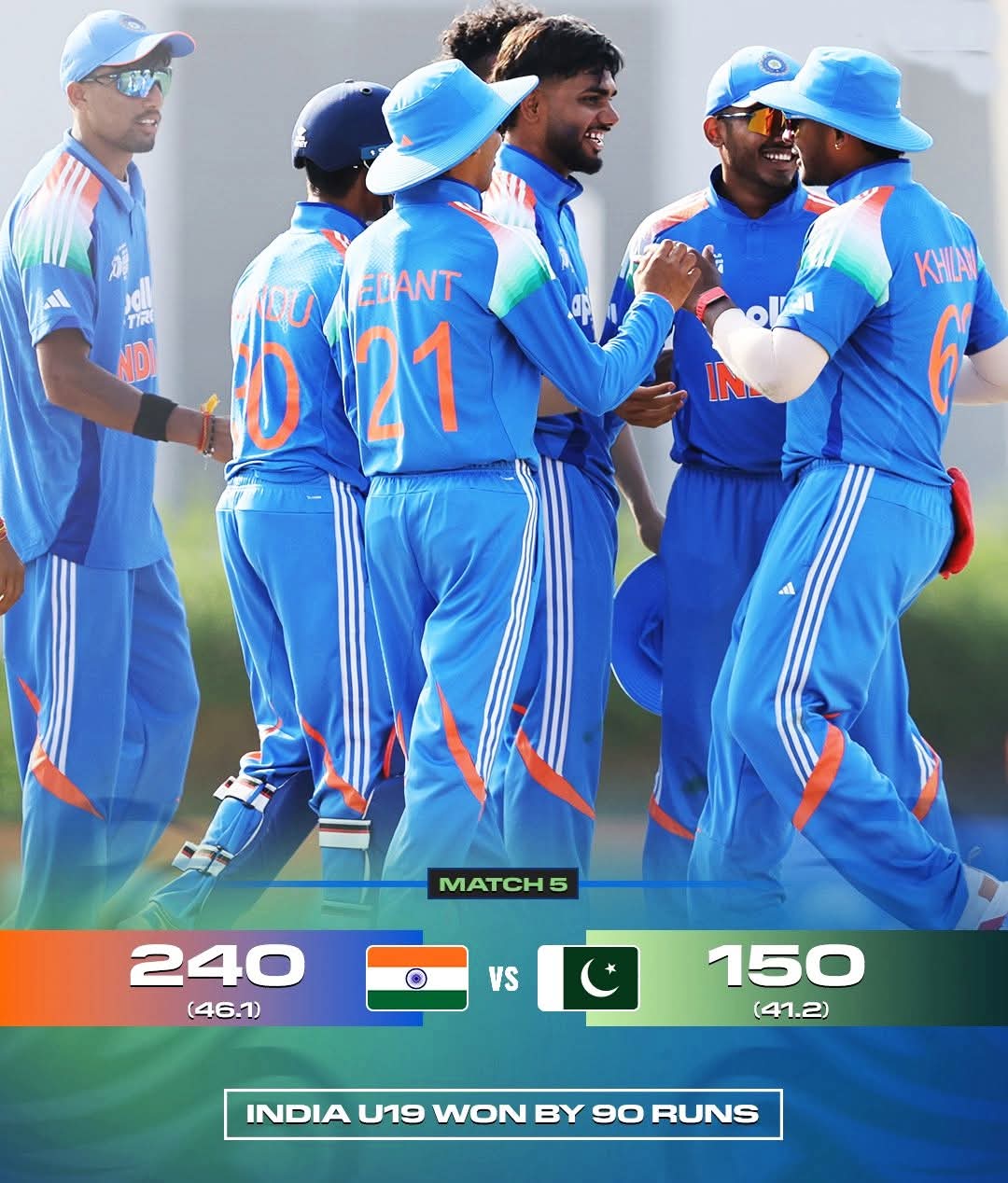 India defeat Pakistan by 90 runs at ICC Academy Ground in Dubai.