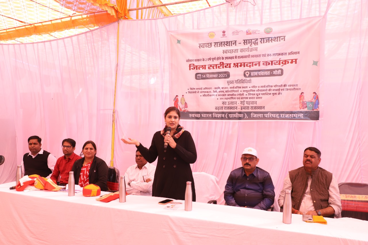 राजसमंद 14 दिसंबर। मुख्यमंत्री श्री भजनलाल शर्मा के नेतृत्व में राज्य सरकार के दो वर्ष पूर्ण होने के उपलक्ष में जिला स्तरीय स्वच्छता जागरूकता एवं श्रमदान कार्यक्रम का आयोजन रविवार को ग्राम पंचायत मोही में किया गया। कार्यक्रम का उद्देश्य स्वच्छता को जनआंदोलन का स्वरूप देना तथा नागरिक सहभागिता के माध्यम से ग्राम एवं सार्वजनिक स्थलों की स्वच्छता एवं सौंदर्याकरण सुनिश्चित करना रहा।