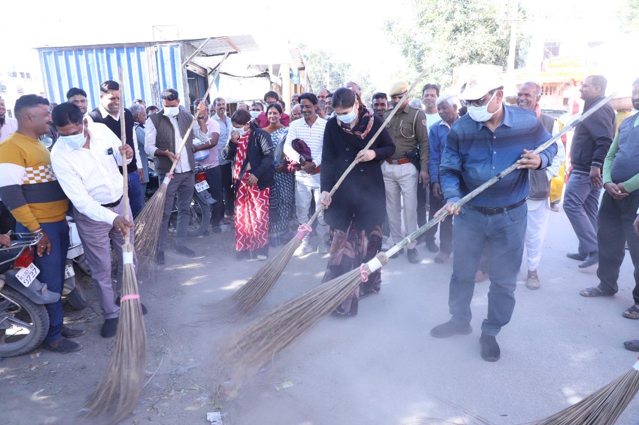 मोही में विधायक दीप्ति माहेश्वरी, कलक्टर हसीजा, सीईओ बैरवा सहित जनप्रतिनिधियों और अधिकारियों ने किया श्रमदान