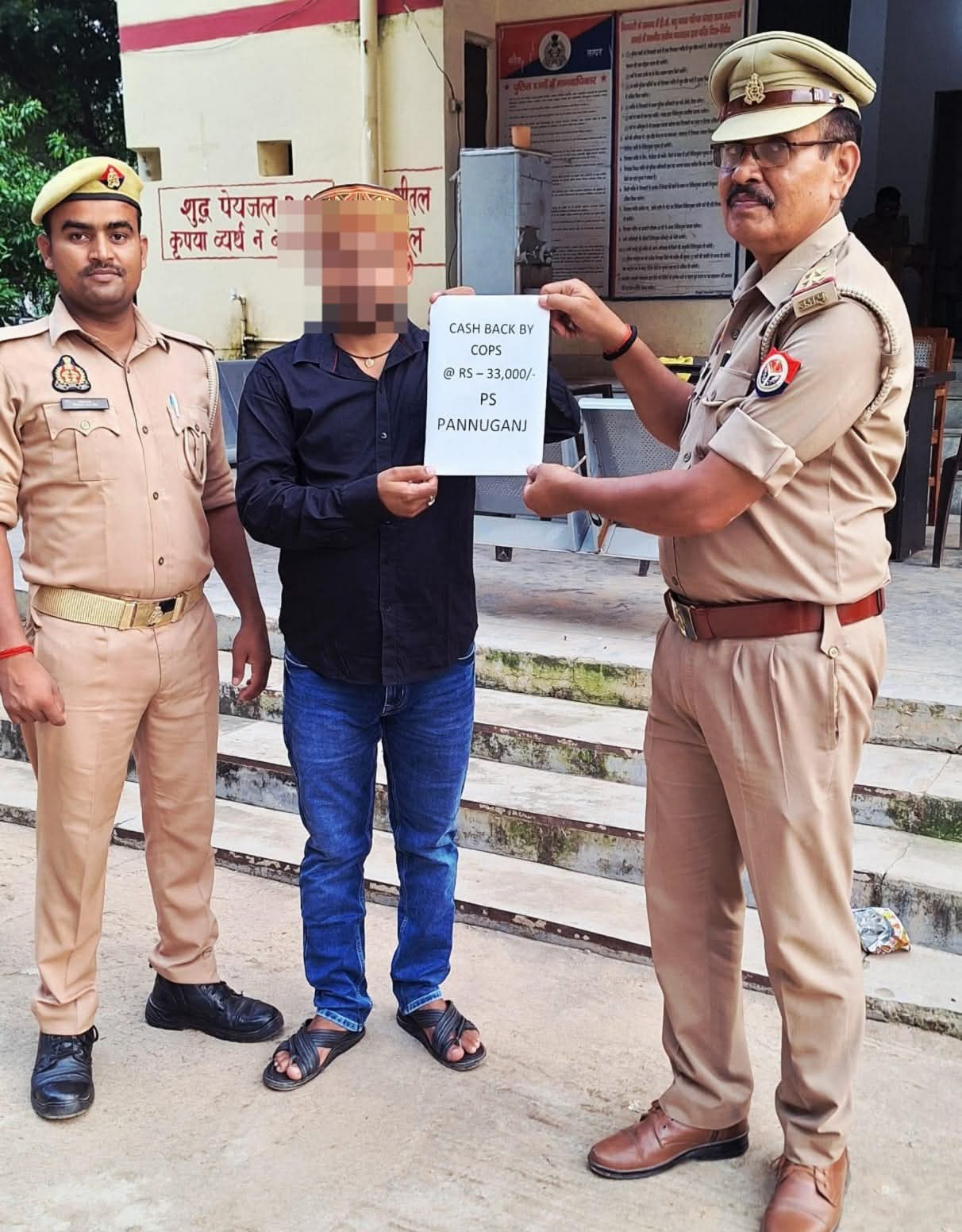 थाना पन्नूगंज की साइबर टीम द्वारा आवेदक का फ्राड हुई सम्पूर्ण धनराशि तैतीस हज़ार रुपये उसके मूल खाते मे कराया गया वापस