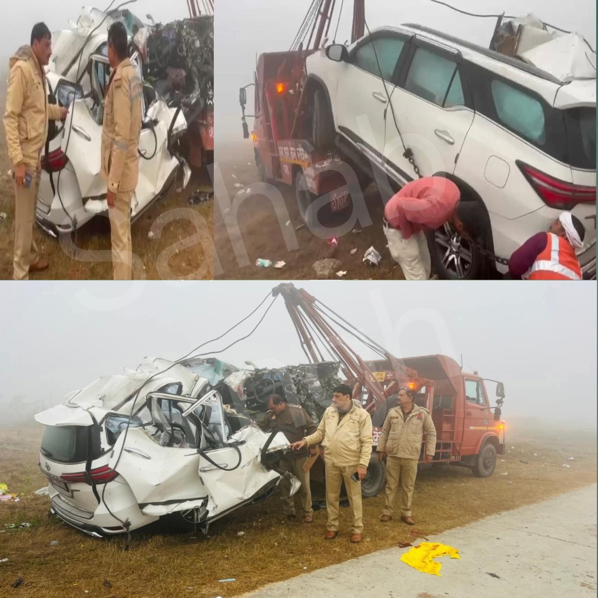 आगरा-लखनऊ एक्सप्रेसवे पर भीषण हादसा: उन्नाव में फॉर्च्यूनर का टायर फटने से 4 लोगों की दर्दनाक मौत