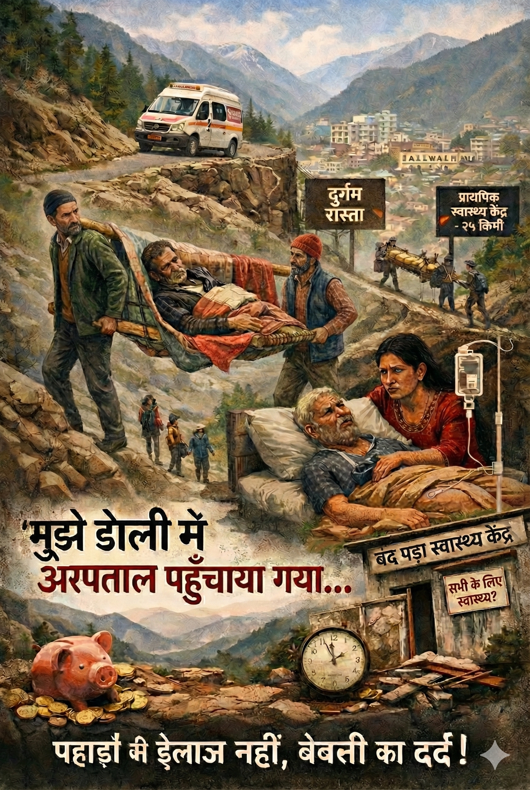 рдорд░реАрдЬ рдХреЛ рдбреЛрд▓реА рдореЗрдВ рдЕрд╕реНрдкрддрд╛рд▓ рдкрд╣реБрдВрдЪрд╛рдпрд╛ рдЬрд╛рддрд╛ рд╣реИред рдпрд╣ рдХреЛрдИ рдПрдХ рдШрдЯрдирд╛ рдирд╣реАрдВ, рдмрд▓реНрдХрд┐ рд░рд╛рдЬреНрдп рдХреЗ рдХрдИ рдкрд╣рд╛рдбрд╝реА рдЬрд┐рд▓реЛрдВ рдХреА рдирд┐рдпрдорд┐рдд рддрд╕реНрд╡реАрд░ рд╣реИред рд╕реНрдерд╛рдиреАрдп рдкреНрд░рд╛рдердорд┐рдХ рд╕реНрд╡рд╛рд╕реНрдереНрдп рдХреЗрдВрджреНрд░ рд╕рд┐рд░реНрдл рдирд╛рдо рдХреЗ рд▓рд┐рдП рдЪрд▓ рд░рд╣реЗ рд╣реИрдВред рдЗрдорд╛рд░рддреЗрдВ рд╣реИрдВ, рдмреЛрд░реНрдб рд▓рдЧреЗ рд╣реИрдВ, рд▓реЗрдХрд┐рди рдЗрд▓рд╛рдЬ рдирд╣реАрдВ рд╣реИред