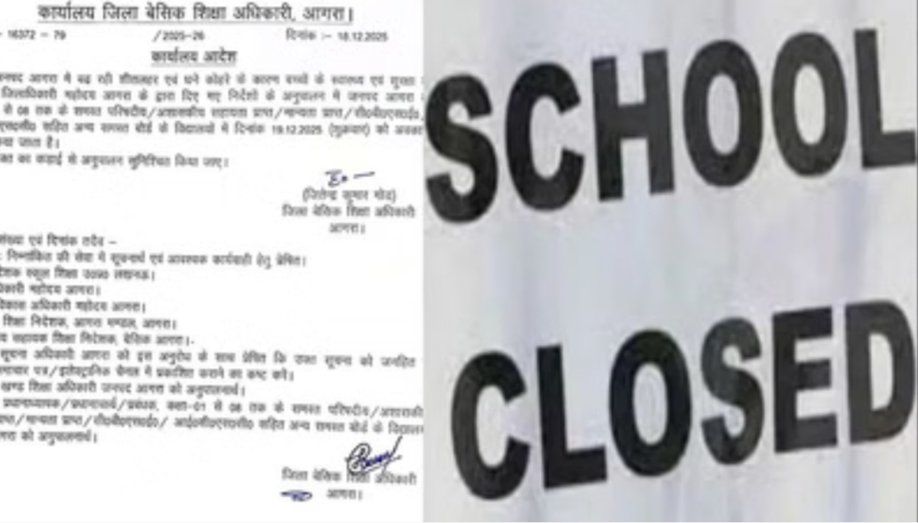 सर्दी के चलते स्कूलों की छुट्टी कर दी गई है। आगरा समेत कई जिलों में जिलाधिकारी के निर्देश पर शिक्षा विभाग ने छुट्टी का आदेश जारी किया है। वहीं कई जगह स्कूल के समय में भी बदलाव किया गया है। आगरा में पिछले कुछ दिनों से सर्दी का सितम जारी है। बृहस्पतिवार को तो सुबह से ही घना कोहरा छाने के साथ गलन ने लोगों को ठिठुरने पर मजबूर कर दिया। ऐसे में स्कूली बच्चे भी ठिठुरते हुए स्कूल पहुंचे थे।