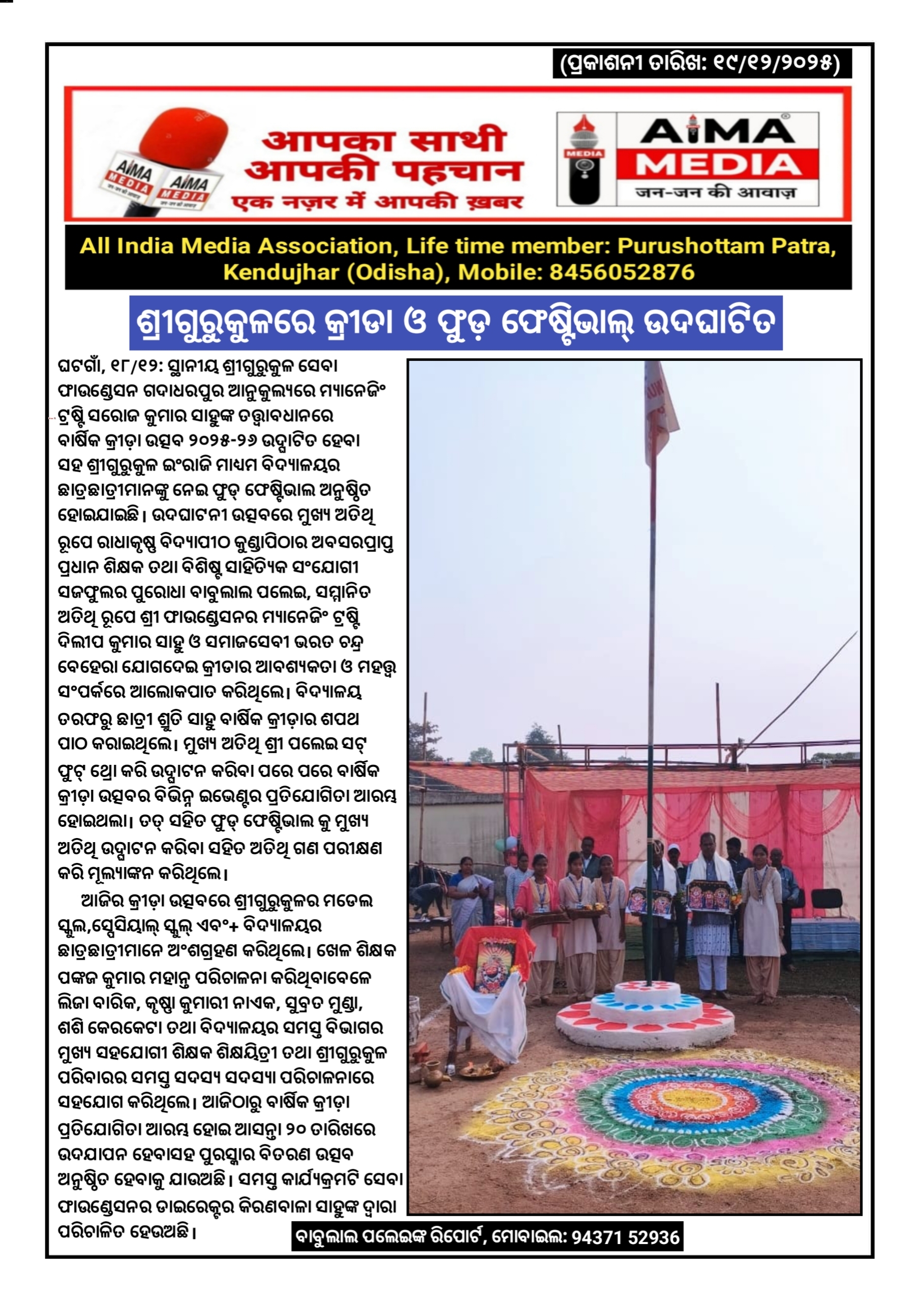 ଶ୍ରୀଗୁରୁକୁଳରେ କ୍ରୀଡା ଓ ଫୁଡ଼ ଫେଷ୍ଟିଭାଲ୍ ଉଦଘାଟିତ।
