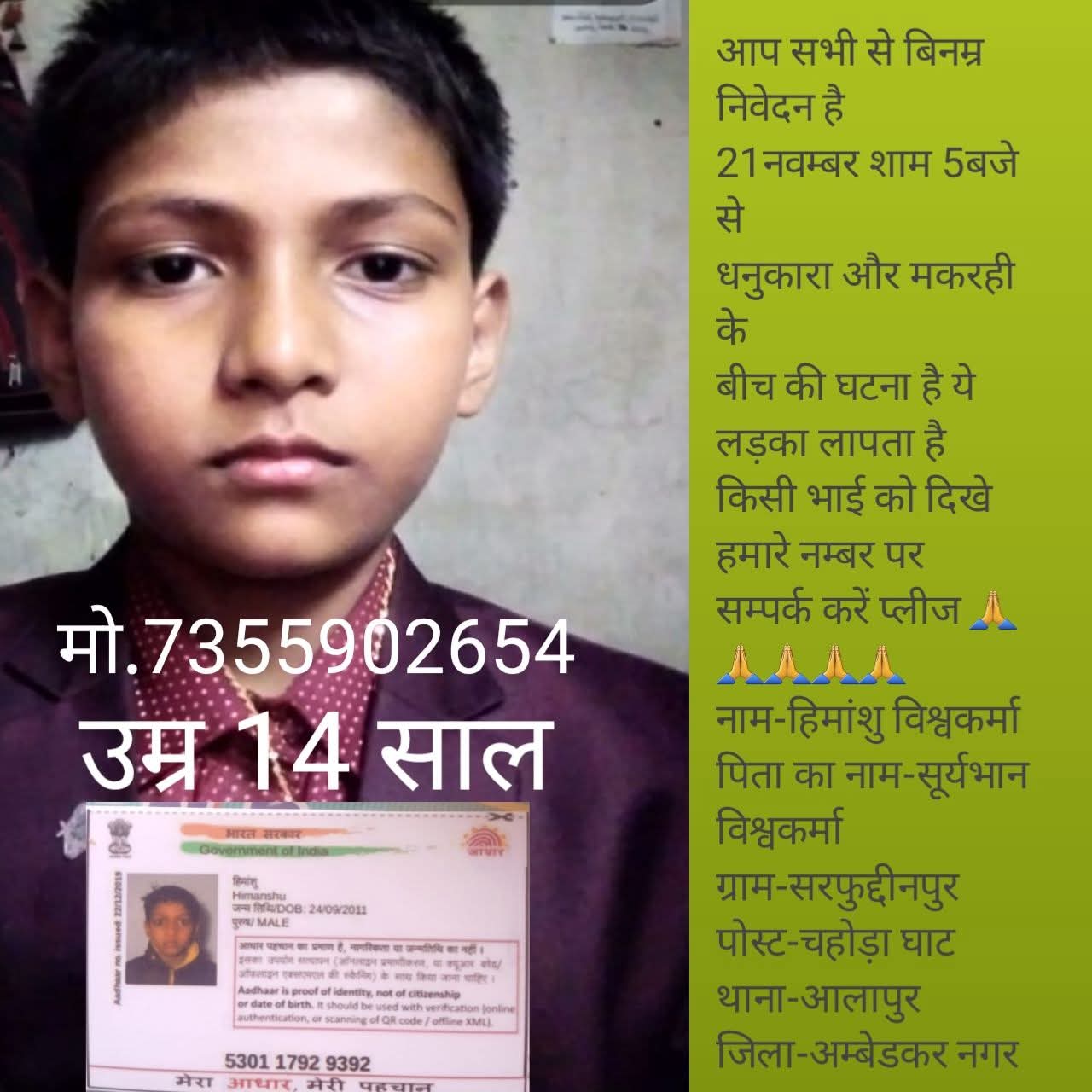 21 November se baccha gayab hai police khojne me nakam pura parivar pareshan hai