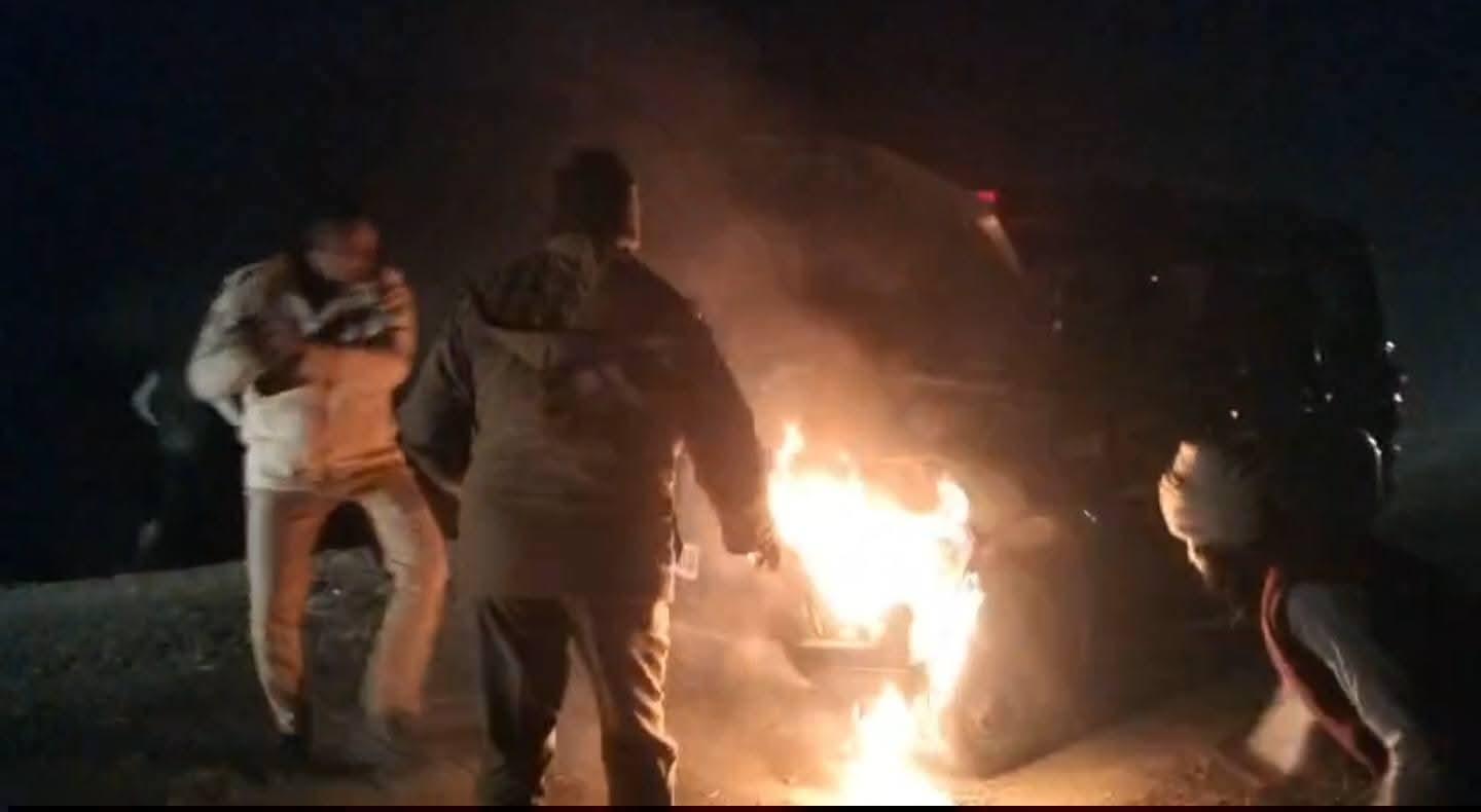 डायल 112 के वाहन में शॉर्ट सर्किट से लगी आग, ग्रामीणों की सूझबूझ से टला बड़ा हादसा