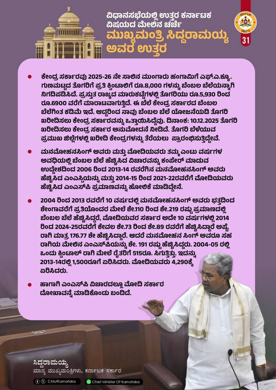 ವಿಧಾನಸಭೆಯಲ್ಲಿ ಈ ವಿಷಯಕ್ಕೆ ಸಂಬಂಧಿಸಿದಂತೆ ನಡೆದ ಚರ್ಚೆಗೆ ಉತ್ತರಿಸುವ ವೇಳೆ ಮಾತನಾಡಿದ ಅವರು, ಉತ್ತರ ಕರ್ನಾಟಕದ ಹಿಂದುಳಿದ ಪ್ರದೇಶಗಳಿಗೆ ವಿಶೇಷ ಆದ್ಯತೆ ನೀಡಲಾಗುತ್ತಿದೆ. ಶಿಕ್ಷಣ, ಆರೋಗ್ಯ, ನೀರಾವರಿ, ಮೂಲಸೌಕರ್ಯ, ಕೈಗಾರಿಕೆ ಹಾಗೂ ಉದ್ಯೋಗ ಸೃಷ್ಟಿ ಕ್ಷೇತ್ರಗಳಲ್ಲಿ ಸಮಗ್ರ ಅಭಿವೃದ್ಧಿ ಯೋಜನೆಗಳನ್ನು ಜಾರಿಗೊಳಿಸಲಾಗುತ್ತಿದೆ ಎಂದು ಹೇಳಿದರು.
