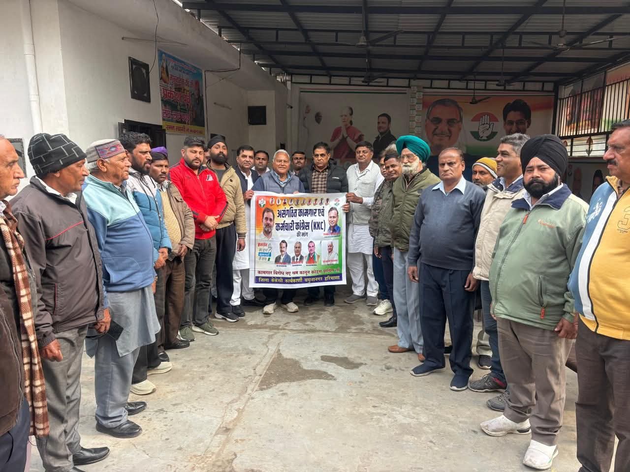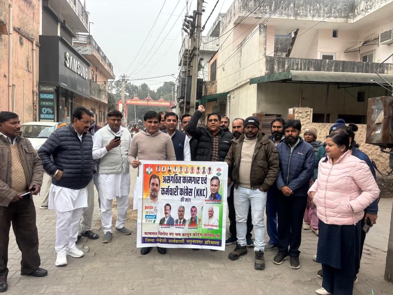 आज केकेसी यमुनानगर जिला श्रम विभाग कार्यालय के सामने केकेसी जिला यमुनानगर प्रभारी श्री संजय मलिक प्रदेश महासचिव, की मौजूदगी में केकेसी जिलाध्यक्ष यमुनानगर संजय सिंह पूर्व सरपंच के नेतृत्व में श्रम विभाग कार्यालय यमुनानगर के सामने 4 श्रम काले कानून के विरोध में प्रतियां जलाई गई और Assistant Labour Commissioner को ज्ञापन सौंपा।लागू श्रम संहिताएं (Labour Codes) के विरोध में प्रदर्शन भी किया केकेसी प्रदेश वाईस चेयरमैन श्री बलजिंदर सिंह, केकेसी प्रदेश वाईस चेयरमैन श्री जगमाल सिंह, केकेसी प्रदेश सचिव श्रीमती पुजा कश्यप, श्रीमती किरन देवी , जिला कांग्रेस कमेटी यमुनानगर के ग्रामीण जिलाध्यक्ष श्री नरपाल गुर्जर और शहरी जिलाध्यक्ष श्री देवेन्द्र सिंह और 2024 में यमुनानगर विधानसभा से चुनाव में प्रत्याशी रहे श्री रमन त्यागी जी और सेंकड़ों कार्यकर्ता मौजूद रहें