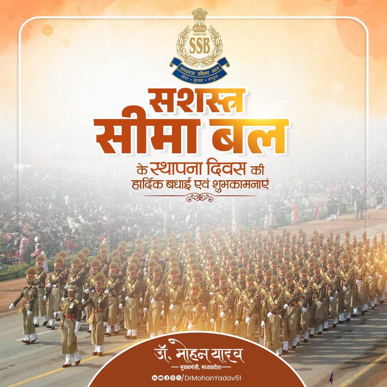 सशस्त्र सीमा बल के स्थापना दिवस की हार्दिक बधाई एवं शुभकामनाएं।