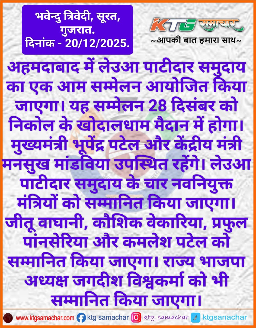 अहमदाबाद में लेउआ पाटीदार समुदाय का एक आम सम्मेलन आयोजित किया जाएगा।