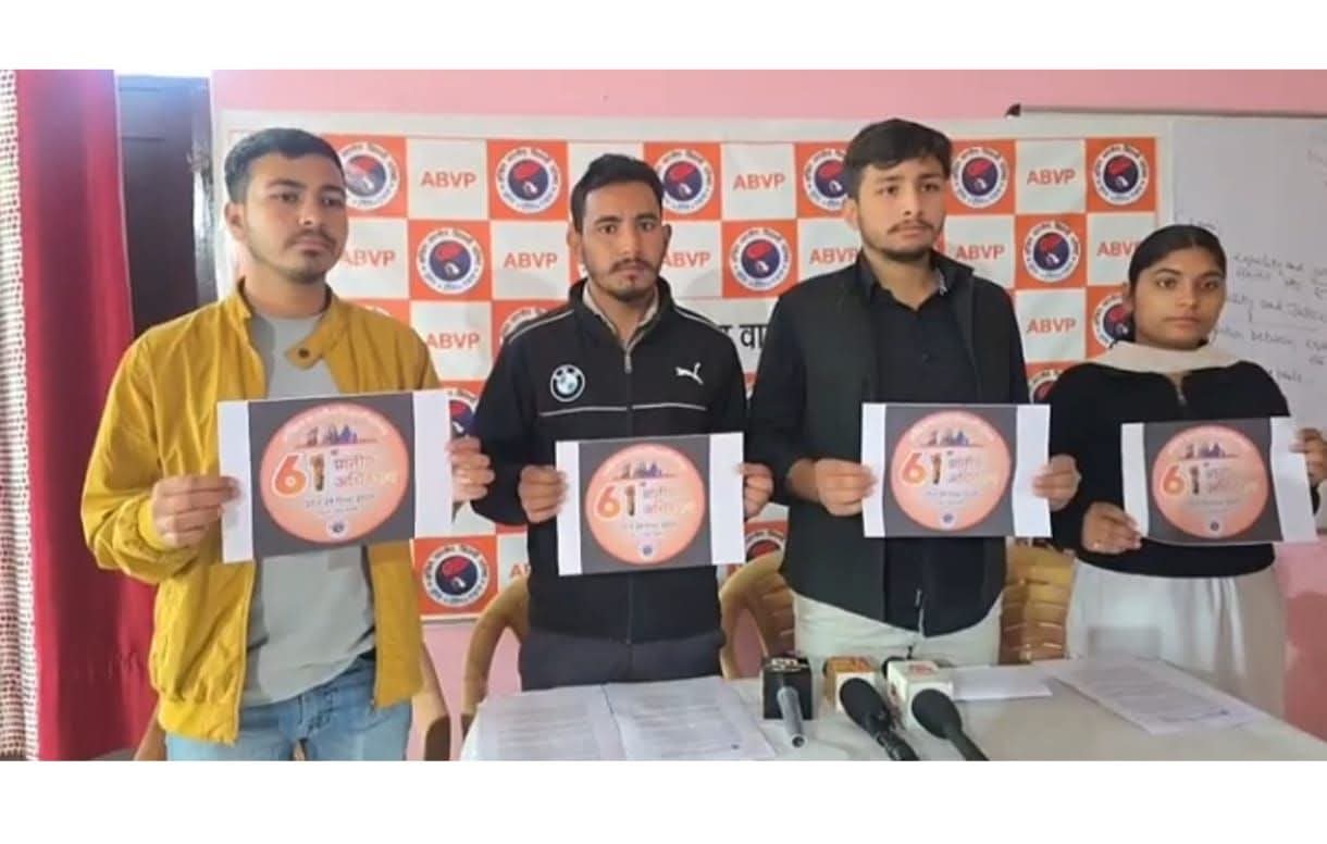 The Akhil Bharatiya Vidyarthi Parishad (ABVP) Jammu & Kashmir has announced that it will hold its 61st State Conference from 27 to 29 December 2025. The three-day event, considered one of the region’s largest youth gatherings, will take place at Diwan Palace in Kathua. For the duration of the conference, the venue city will be ceremonially renamed “Sunil Upadhyay Nagar” in honour of a prominent ABVP leader from the region.