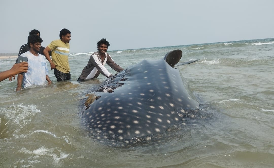 పూడిమడక సముద్ర తీరానికి కొట్టుకొచ్చిన భారీ నీలి తిమింగలం