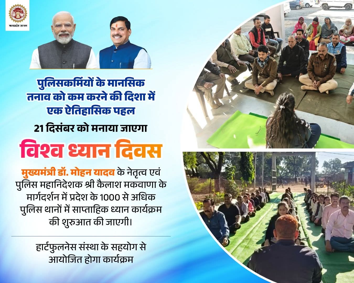 📍 प्रदेश के 1000 से अधिक पुलिस थानों में साप्ताहिक ध्यान कार्यक्रम का आयोजन