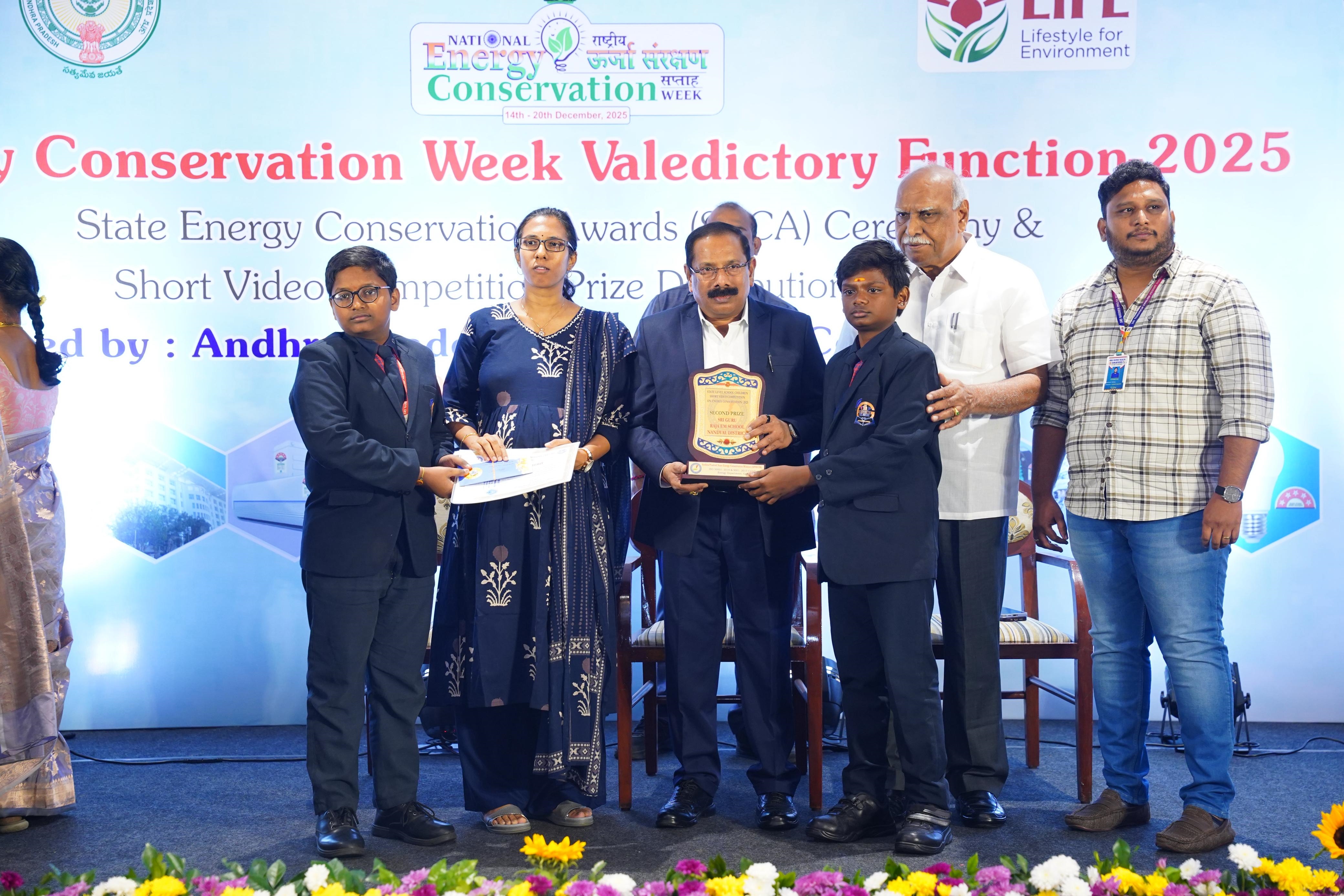 నంద్యాల (AIMA MEDIA): రాష్ట్ర స్థాయిలో నిర్వహించిన ఎనర్జీ కన్జర్వేషన్ వీడియో కాంపిటీషన్ నందు శ్రీ గురురాజా ఇంగ్లీష్ మీడియం స్కూల్ విద్యార్థులు ద్వితీయ బహుమతి సాధించినట్లుగా స్కూల్ డైరెక్టర్ పి షేక్షావలి రెడ్డి తెలిపారు. ఈ ఘనవిజయం ఓ ప్రత్యేకమైనది.ఎందుకంటే గత మూడు సంవత్సరాల నుండి వరుసగా రాష్ట్రస్థాయిలో బహుమతులు సాధించిన ఏకైక పాఠశాలగా శ్రీ గురురాజా ఇంగ్లీష్ మీడియం స్కూల్ చరిత్ర సృష్టించినది.. విజయవాడలో నిర్వహించిన బహుమతి ప్రధానోత్సవ కార్యక్రమానికి ముఖ్య అతిథులుగా ఆంధ్రప్రదేశ్ ప్రభుత్వ ప్రధాన కార్యదర్శి శ్రీ విజయనంద్ ఐఏఎస్ గారు ,ఏపీ స్టేట్ ఎనర్జీ కన్జర్వేషన్ మిషన్ చైర్మన్ శ్రీమతి ఎస్ నాగలక్ష్మి ఐఏఎస్, మేనేజింగ్ డైరెక్టర్ ఏపీ జెన్కో సీఈవో శ్రీ పి పుల్లారెడ్డి విజేతులకు బహుమతులు ప్రధానం చేశారు. ఈ సందర్భంగా అతిధులు మాట్లాడుతూ ఎనర్జీ సంరక్షణపై విద్యార్థుల్లో అవగాహన పెంపొందిస్తూ సమాజానికి సందేశం ఇచ్చే వినూత్న ఆలోచనలతో రూపొందించిన వీడియో జూరీ సభ్యులు విశేషంగా ఆకట్టుకున్నట్టుగా సంస్థ ప్రతినిధులు విద్యార్థుల శాస్త్రీయ విజ్ఞానాన్ని అభినందించారు.గురు రాజా పాఠశాల యాజమాన్యం విద్యార్థులను విద్యారంగంలోనే కాకుండా సామాజిక బాధ్యత, పర్యావరణ పరిరక్షణ లో కూడా ముందంజలో నిలుస్తూ భవిష్యత్ తరాల కు ఆదర్శంగా నిలుస్తుందని వారు ప్రత్యేకంగా ప్రశంసించారు. ఈ సందర్భంగా విద్యార్థుల విజయానికి ఆధునిక టెక్నాల తో కూడిన విధివిధానాలతో చక్కని శిక్షణ అందించిన ఉపాధ్యాయ బృందానికి స్కూల్ డైరెక్టర్ ప్రత్యేకంగా అభినందనలు తెలిపారు.