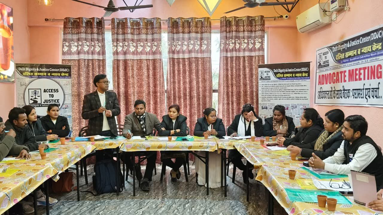 दलित सम्मान व न्याय केंद्र के संस्थापक एड.कुलदीप कुमार बौद्ध ने जिले में किये जा रहे दलित अत्याचार/उत्पीड़न, पॉक्सो व महिला हिंसा के केसों की अध्यन पर बात रखते हुये बताया कि पिछले 3 सालों में 254 केसों के अध्यन में पाया की 24 केसों में फाइनल रिपोर्ट लग गयी 168 केस कोर्ट ट्रायल में पहुंचे वाही 62 केस येसे है जिनमे समय सीमा बीत जाने के बाद भी अभी तक चार्जसीट नहीं लगी है इन पीड़ितों को न्याय दिलाने के लिए ठोस प्रयास करने होंगे दलित सम्मान व न्याय केंद्र पुलिस थाने में रजिस्टर्ड होने बाले सभी केसों, अखबारों में प्रकाशित होने बाले केसों का संकलन व पीड़ितों के घर जाकर केसों की फैक्टफाइंडिंग व प्रतेक केस का दस्तावेजीकरण करते हुए पीड़ितों को सम्मान पूर्ण न्याय दिलाने के प्रक्रिया में लगी है आगे न्याय तक पहुँच अभियान को सभी के साथ मिलकर और अधिक मजबूती से प्रयास किया जायेगा ताकि प्रतेक व्यक्ति को सम्मान पूर्ण न्याय मिल सके, आगे और भी येसी मीटिंगे होंगी सभी अधिवक्ताओं ने इस मुहिम को आगे बढ़ाने में सहयोग करने का आश्वासन भी दिया और सभी ने सामूहिक रूप से भारतीय संविधान की प्रस्तावना पढ़कर मीटिंग समाप्त की गयी |