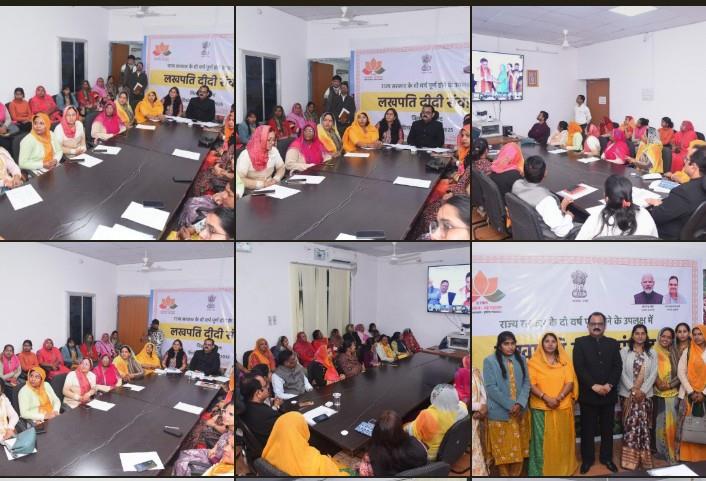 रविवार को मुख्यमंत्री लखपति दीदी सम्मान एवं संवाद कार्यक्रम का आयोजन जिला कलक्टर अरुण कुमार हसीजा के समन्वय एवं मार्गदर्शन में डीओआईटी वीसी कक्ष में रविवार को वर्चुअल माध्यम द्वारा किया गया। कार्यक्रम के दौरान मुख्यमंत्री भजनलाल शर्मा ने जयपुर से जिले सहित प्रदेश की लखपति दीदियों से वर्चुअल कॉन्फ्रेंस के माध्यम से सीधा संवाद किया।