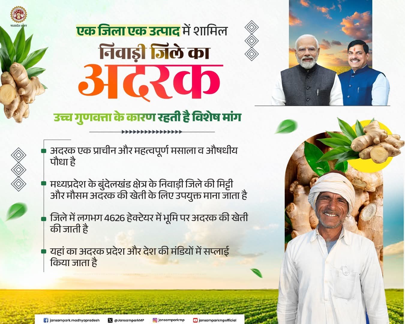 एक जिला एक उत्पाद में शामिल निवाड़ी जिले का अदरक