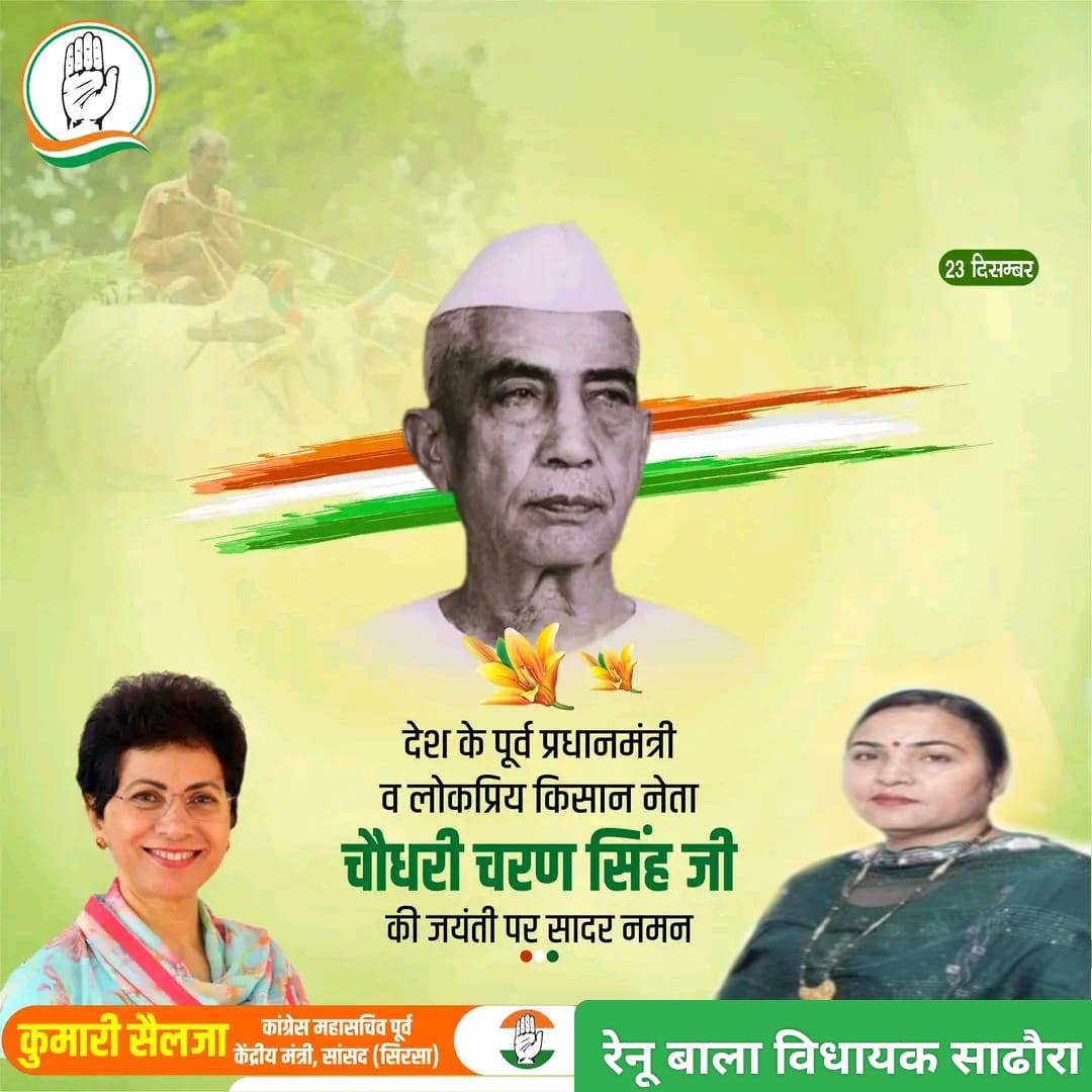कपुरी - आज 23 दिसंबर 2025, हल्का सधौरा विधायक मैडम रेणु बाला जी नें भूतपूर्व प्रधानमंत्री चौ. चरण सिंघ जी की जयंटी पर नमन इस प्रकार किया, "देश की खुशहाली का रास्ता गांव और खेतों से होकर गुजरता है