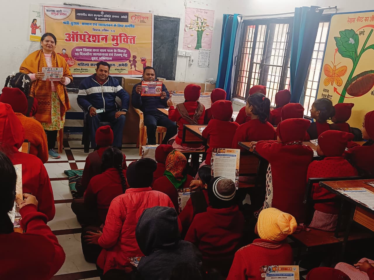 "बाल विवाह मुक्त भारत" अभियान के तहत महिला कल्याण विभाग जनपद अमेठी द्वारा बालिकाओं को किया गया जागरूक तथा दी गयी संचालित योजनाओं के बारे में जानकारी।