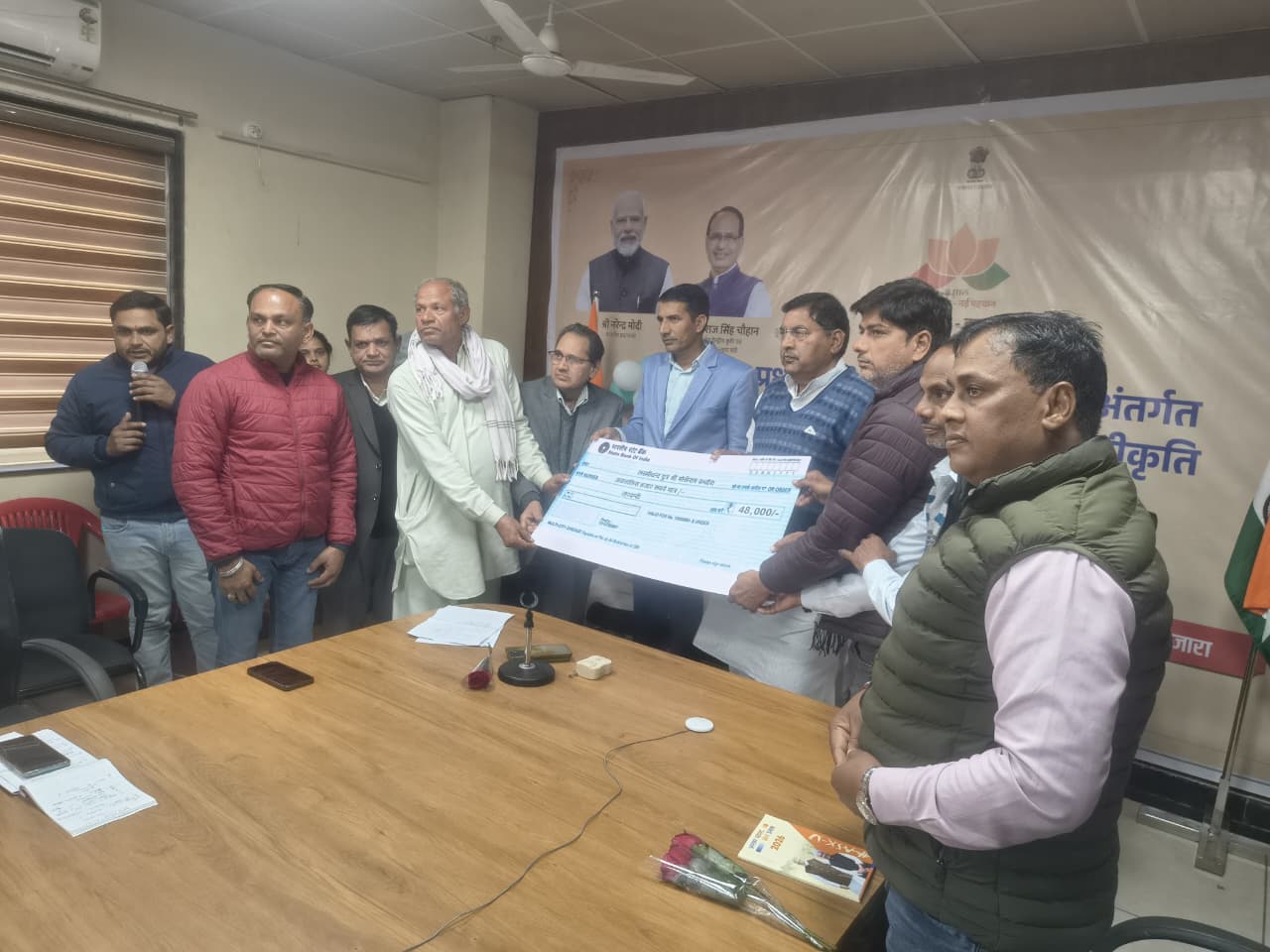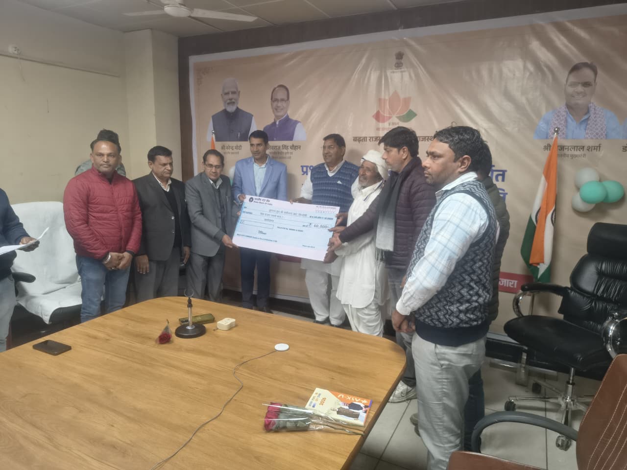 इस अवसर पर मुख्य अतिथि द्वारा ग्राम जिंदोली निवासी कृषक सुल्तान पुत्र अमीचंद जाट को फार्म पोंड हेतु 60,000 रुपये, ग्राम बम्बोरा निवासी लक्ष्मीचंद पुत्र मोतीराम जाट को तारबंदी हेतु 48,000 रुपये तथा ग्राम ओदरा निवासी मोरमल पुत्र सुमेर खान को कृषि यंत्र हेतु 11,000 रुपये के अनुदान के चेक प्रदान किए गए।