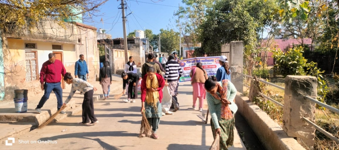 राष्ट्रीय सेवा योजना के तीसरे दिन गोद ली बस्ती व स्कूल में श्रमदान कर सफाई की
